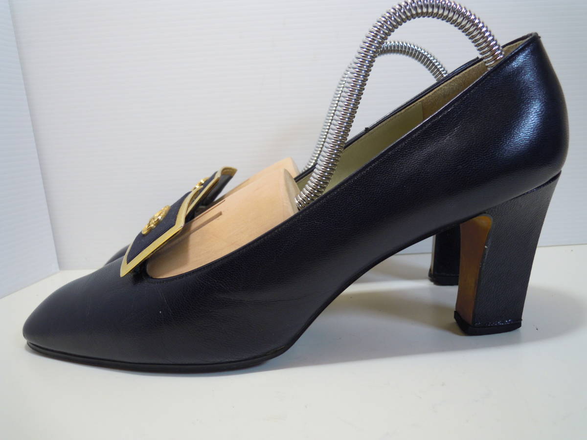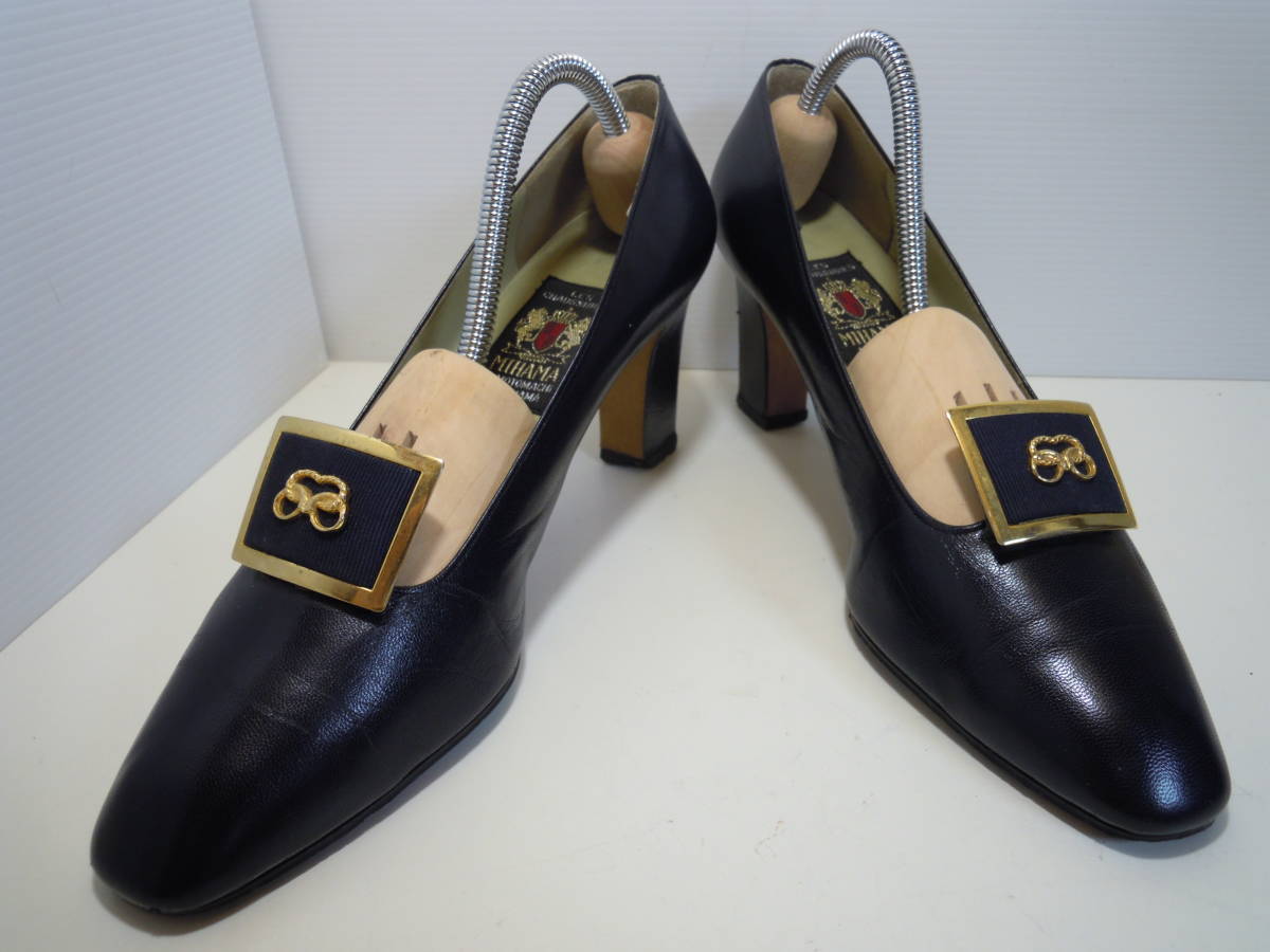 | 【ブランド・形態 】 MIHAMA ミハマ 本革 オーナメント飾り パンプス サイズ24.0cm 日本製です。 【カラー】 ネイビーです。 掲載の実物写真はPC環境や光の加減により実物と色合いが若干異なる場合があります。 【特徴】 MIHAMAミハマの上質なレザーを使用した、洗練されたシルエットが魅力のパンプスです。 柔らかな艶消しレザーに、マリンテイストなオーナメント飾りが上品なパンプス。 程よい高さのフラットヒールがよりエレガントさをプラスし、足首まわりもスラっとキレイに見せてくれる安定感のある1足です。 返りが良く快適な履き心地のパンプスです。 普段使いだけじゃなく、あらゆるシーンで活躍する万能なデザインが魅力です。 ヒール高さ:約7.0cm、最大幅:約7.5cm 【状態】 少々使用感はございますが、特に目立つダメージは見受けられず、使用に問題無いと思われます。 アッパーはつま先・ヒールに細かな擦れはありますが、比較的にきれいです。 トップリフトは欠けてきていますので、リペアしてから履いてください。 保存箱はありません。 【素材】 アッパー:本皮革 アウターソール:合成底 【サイズ】 24.0cm、 質量:370g #ミハマ #MIHAMA | |||