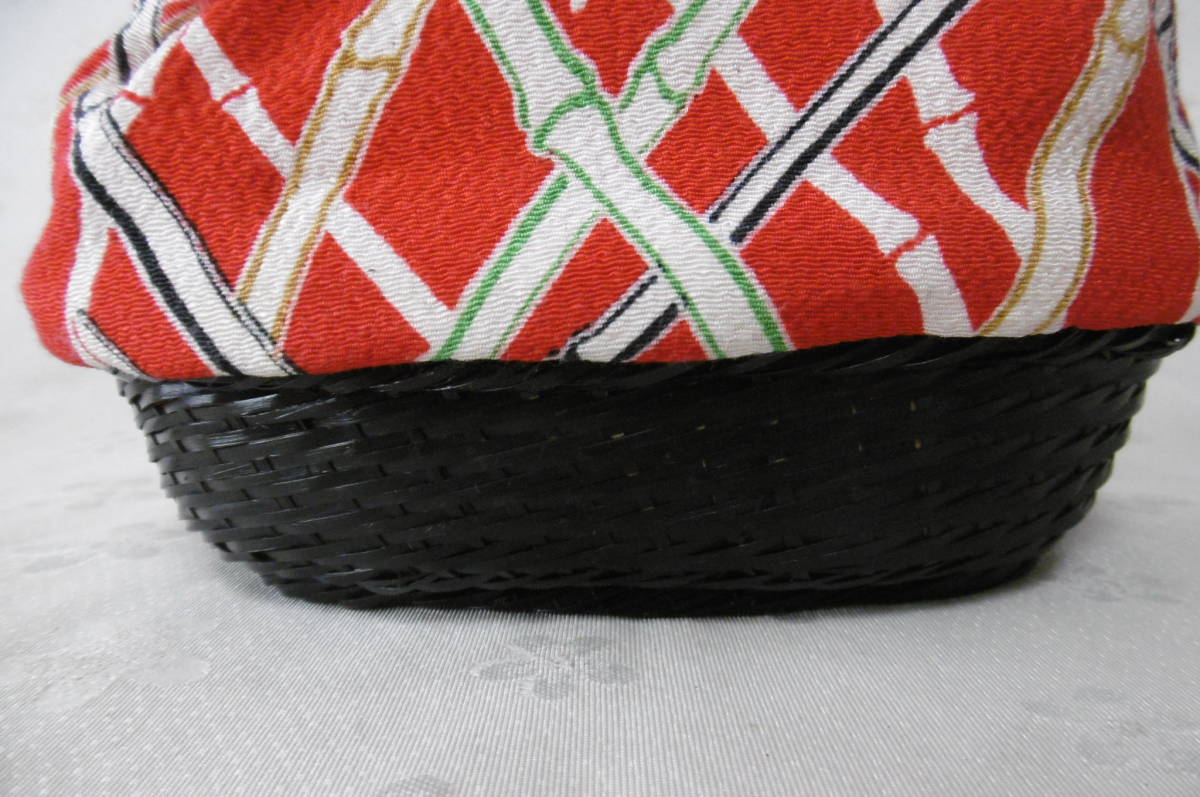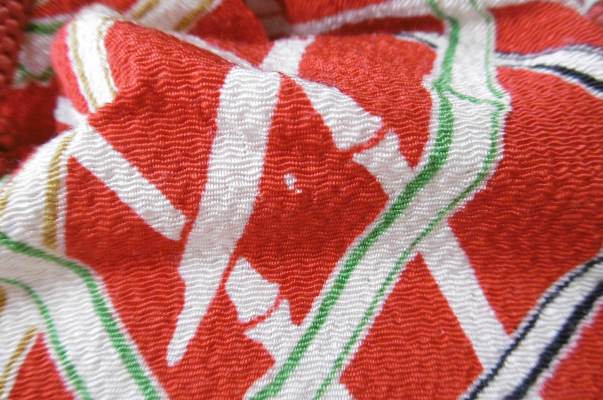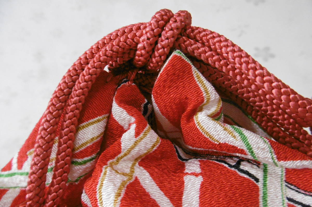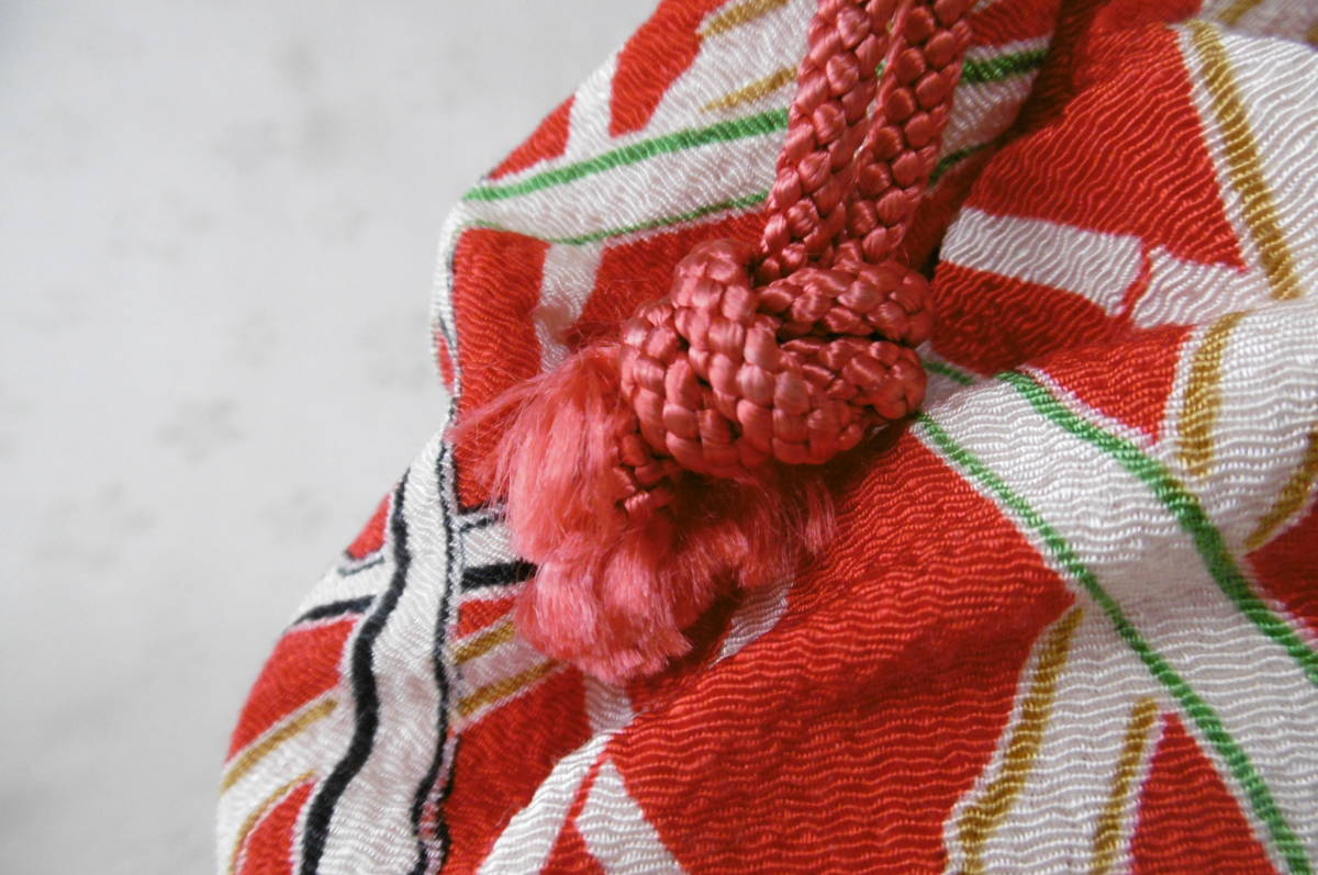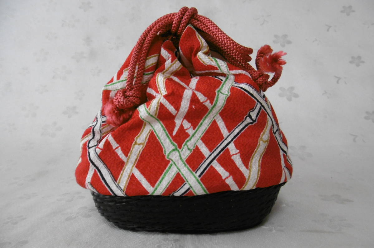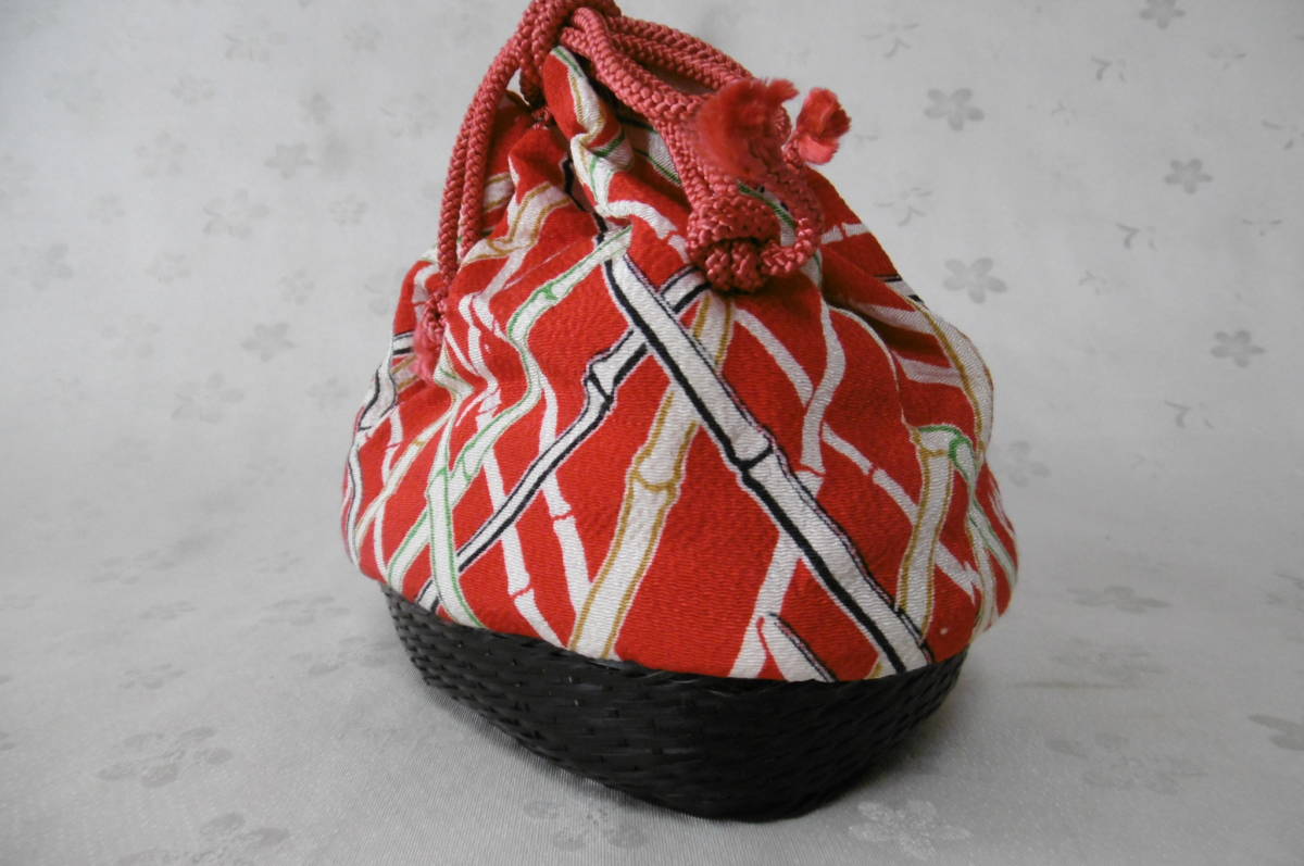 | ★ 商品名 *USED訳あり★巾着★きんちゃく 楕円形 籠底 ちりめん赤色 竹柄★和装小物 バッグ★着物・和服・浴衣★4361 |