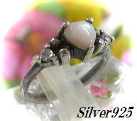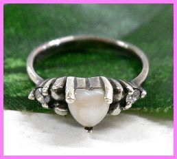 シルバー925銀のハート型シェル&ジルコニア付 ピンキーリング[ホワイト]4号ラスト1個