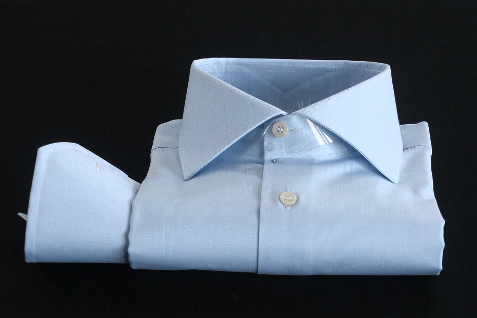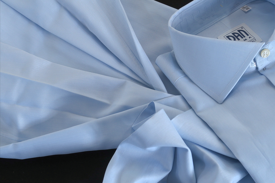 ★イタリアシャツ DANROMA ワイドカラー ART VILLAGE_CELESTE 672 Herringbone 超微細に杉綾ヘリンボンライトブルー♬~ M 40-91