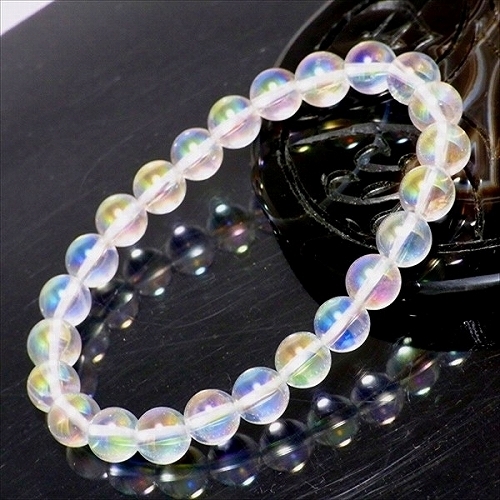 <虹>レインボーオーラ水晶(8㎜)ブレスレット M1 内周約16cm A1641