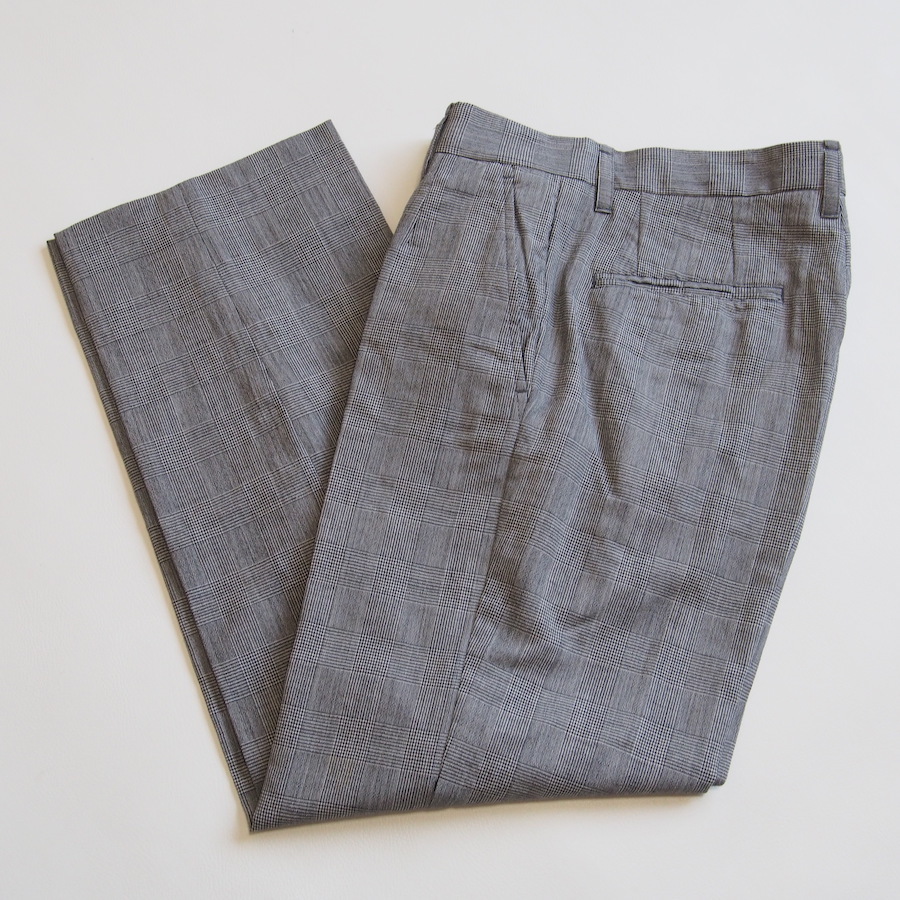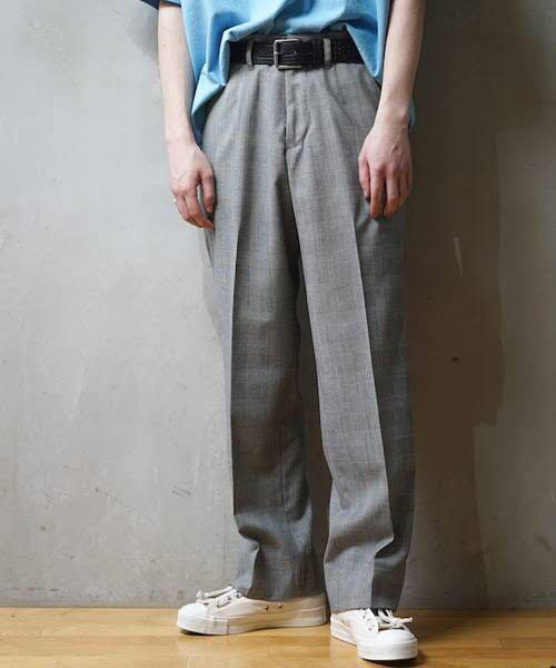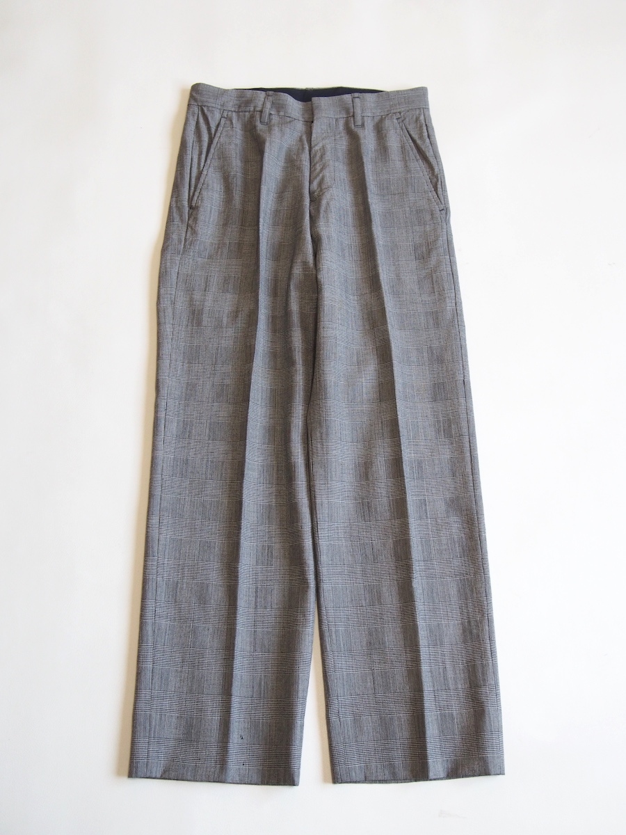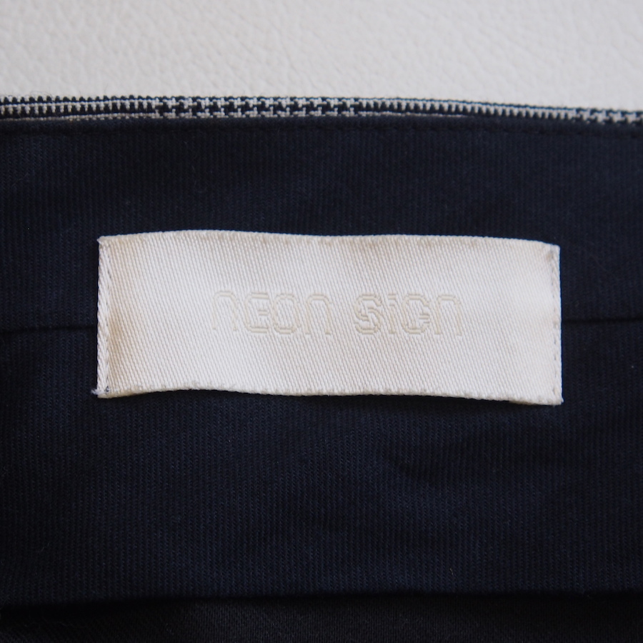 上質なグレンチェック柄のウール素材を使用したネオンサインのスラックスです。 ストンとしたゆとりのあるストレートシルエットはストリートにもモードにもお使いいただけます。 定価29160円です