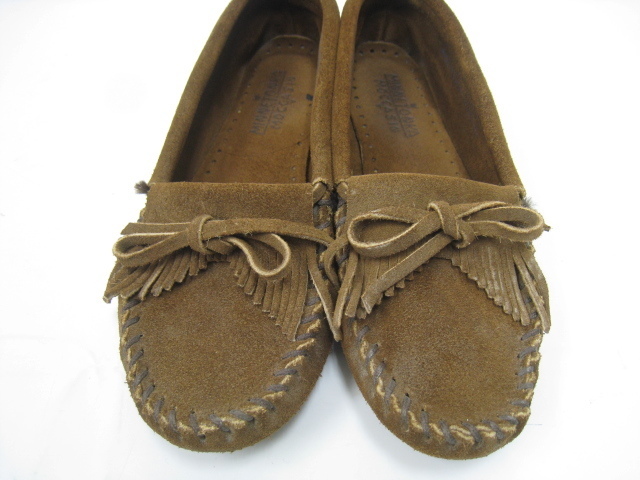 MINNETONKA ミネトンカ キルティ スエード モカシン シューズ フリンジ ブラウン系 茶 6.5 6 1/2 レディース