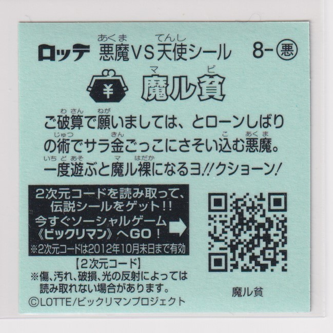 ビックリマン伝説1 悪 008 魔ル貧 (画像あり)