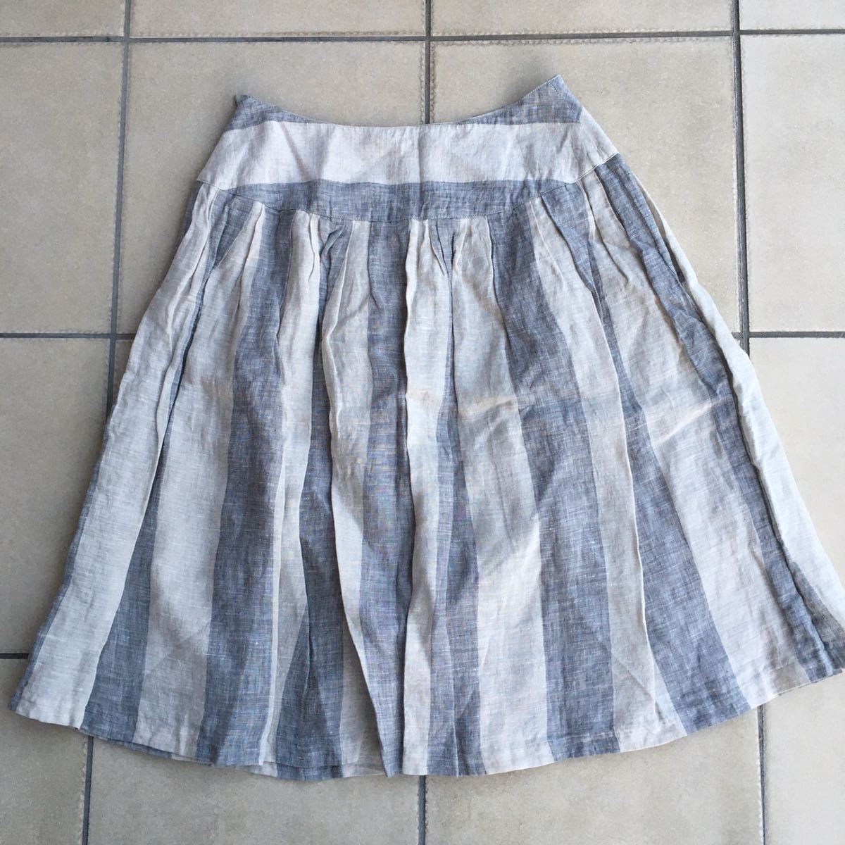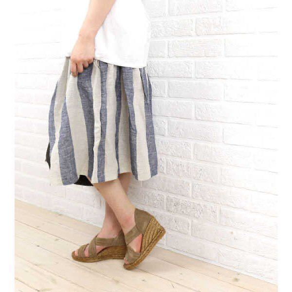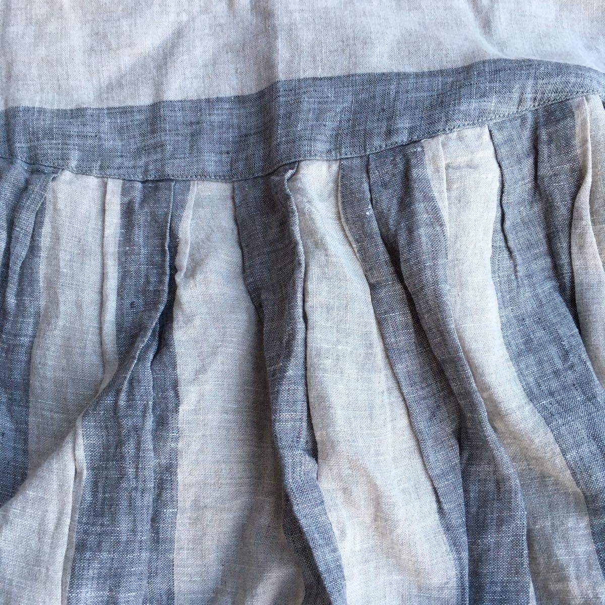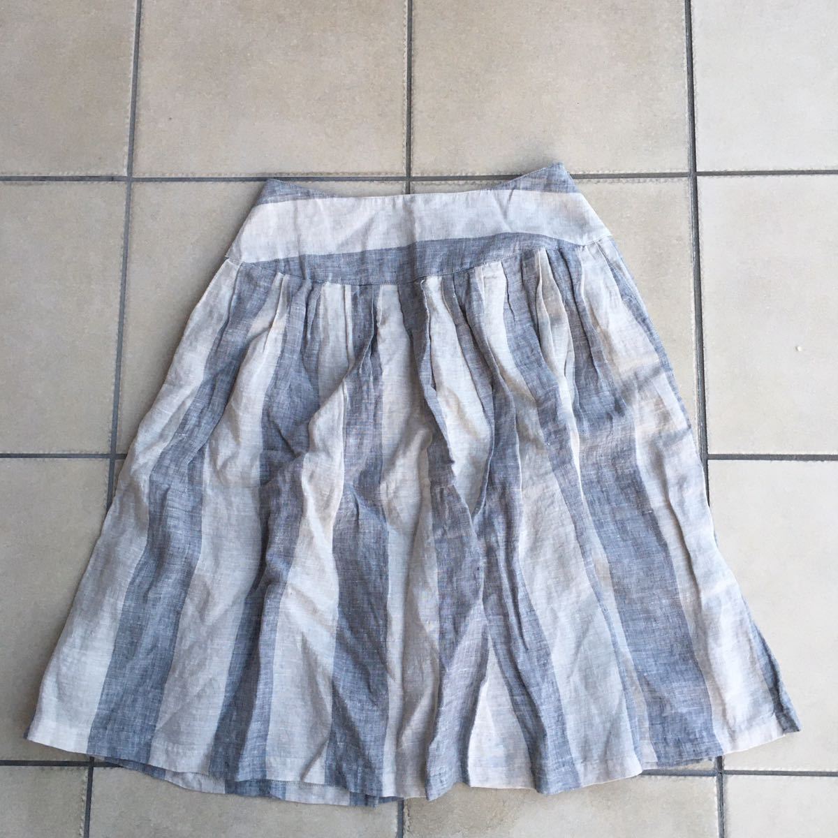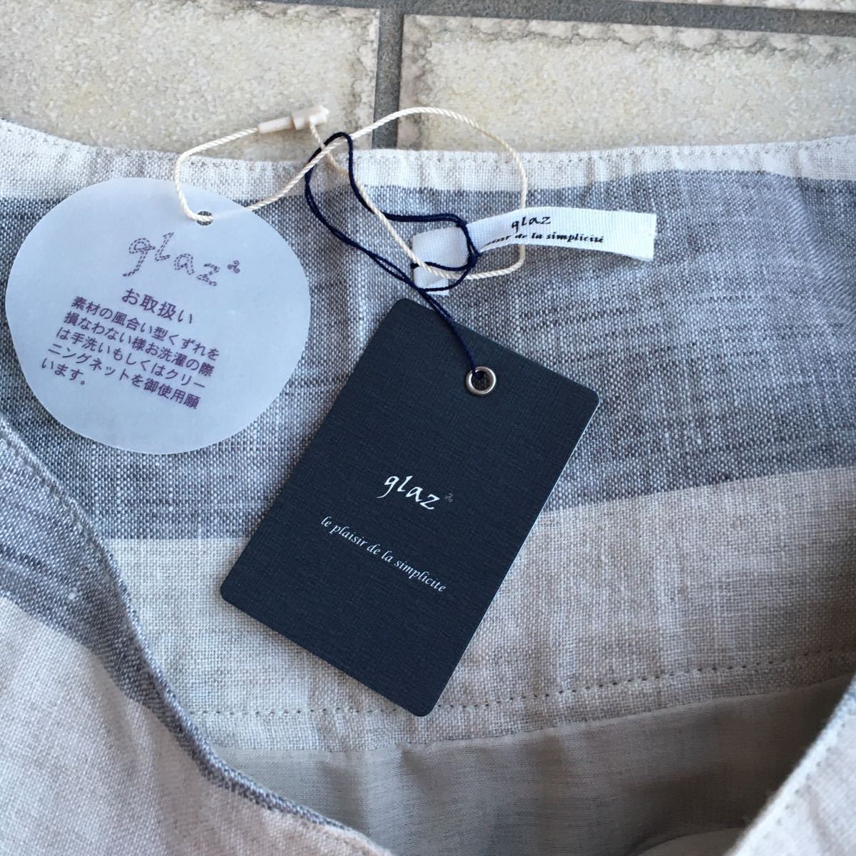 新品 未使用 glaz グラズ リネン ストライプ 膝丈 ギャザースカート