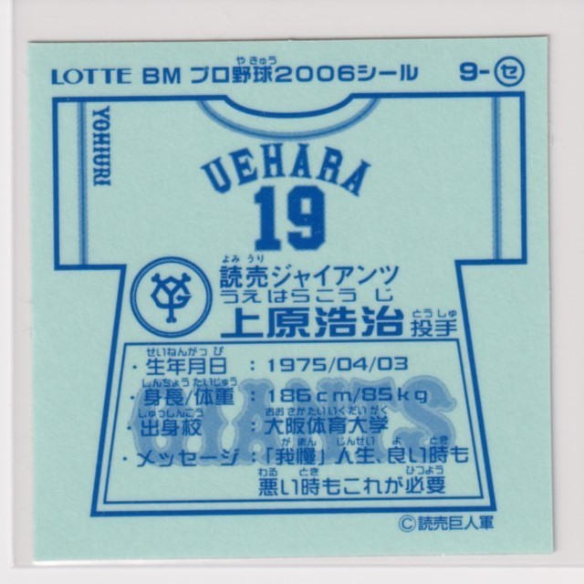 ビックリマン プロ野球チョコ2006 セ09 上原浩治(巨人) (画像あり)