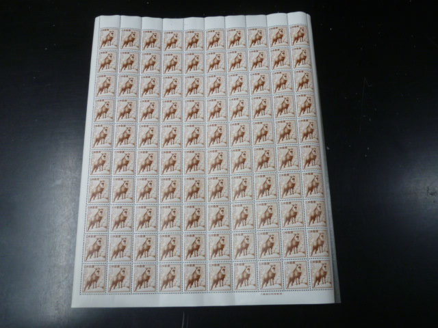 20 P 日本切手 普通 1952-59年 #299B 1次円単位 8円 100面シート 計5枚 未使用NH・VF