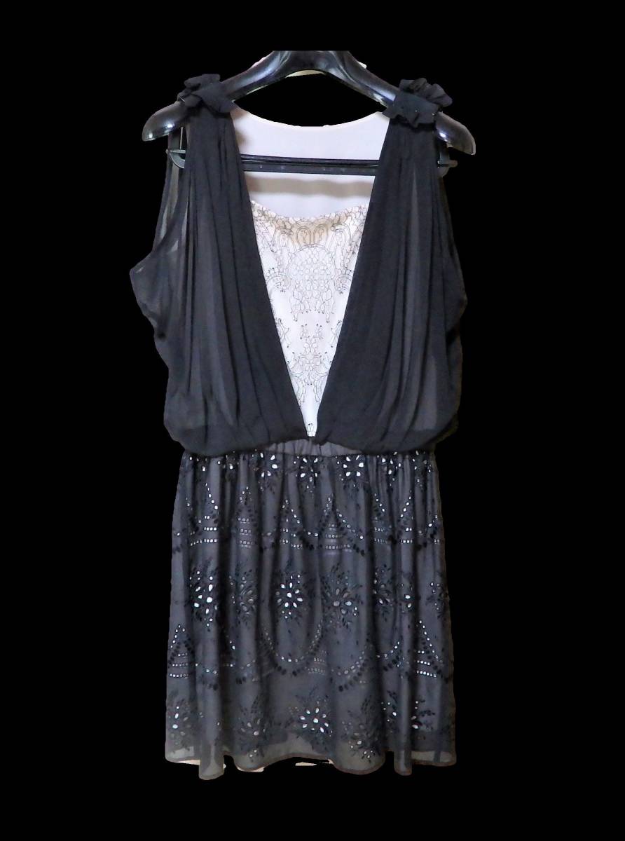 ◆CYNTHIA ROWLEYシンシアローリーレースワンピースシルク100%黒☆サイズ2☆訳ありUSED☆◆