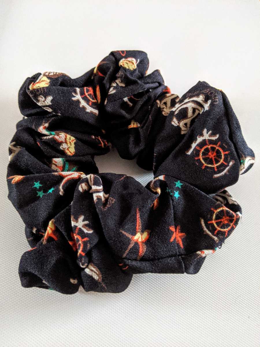 こちらは、 ブラックのお色、船の舵(かじ)柄 シュシュ」になります♪