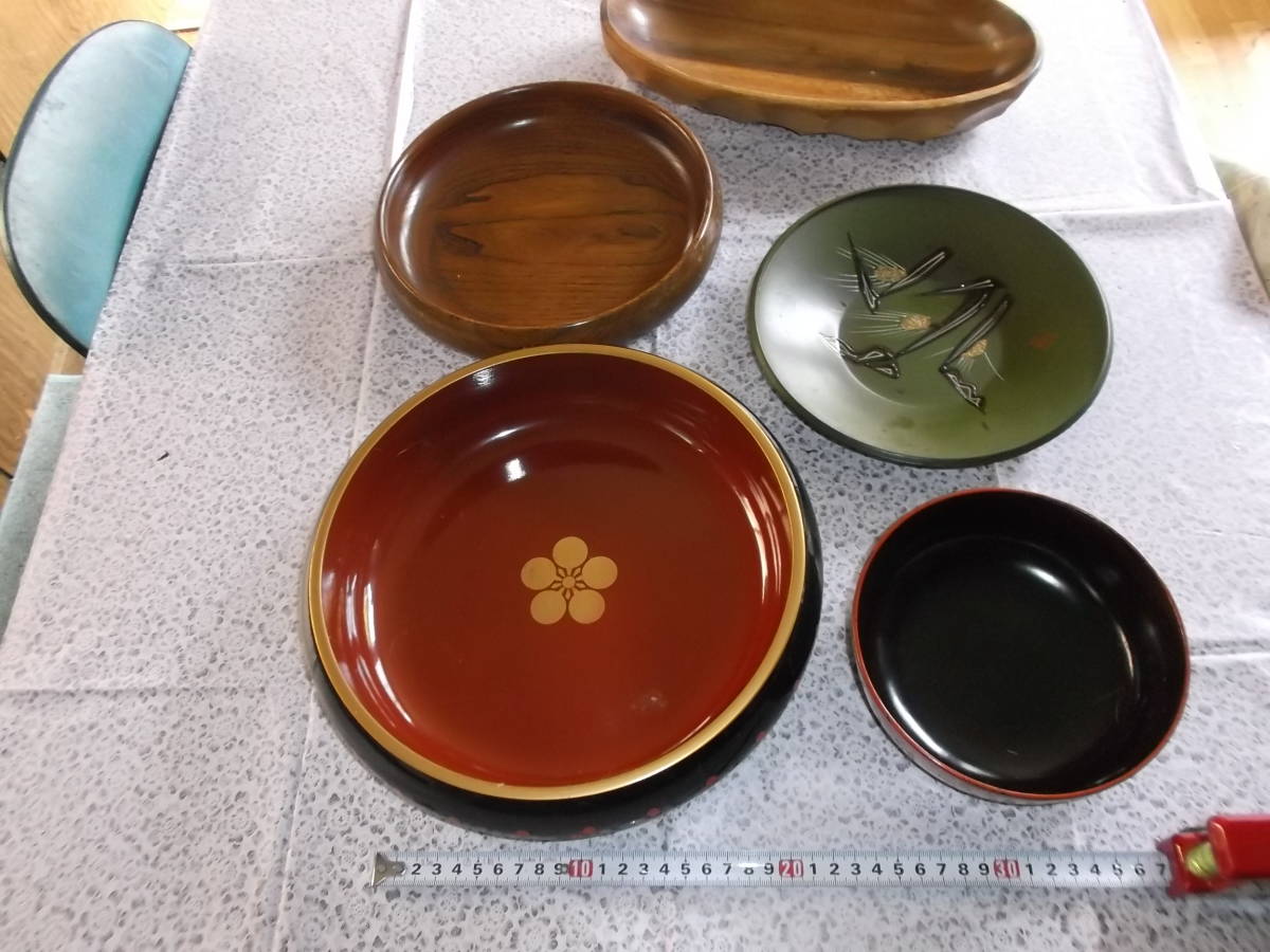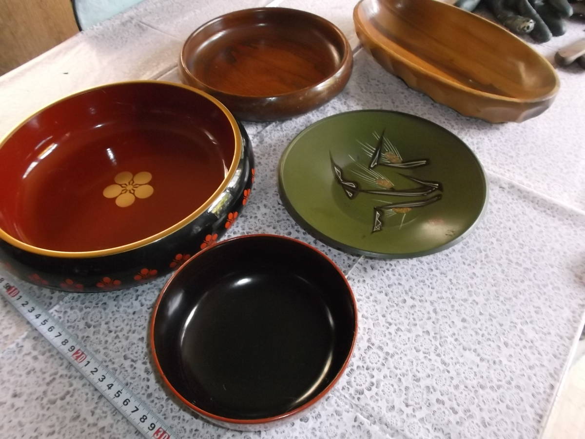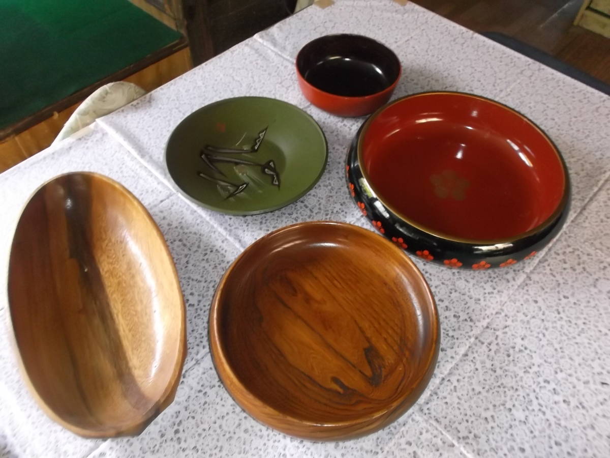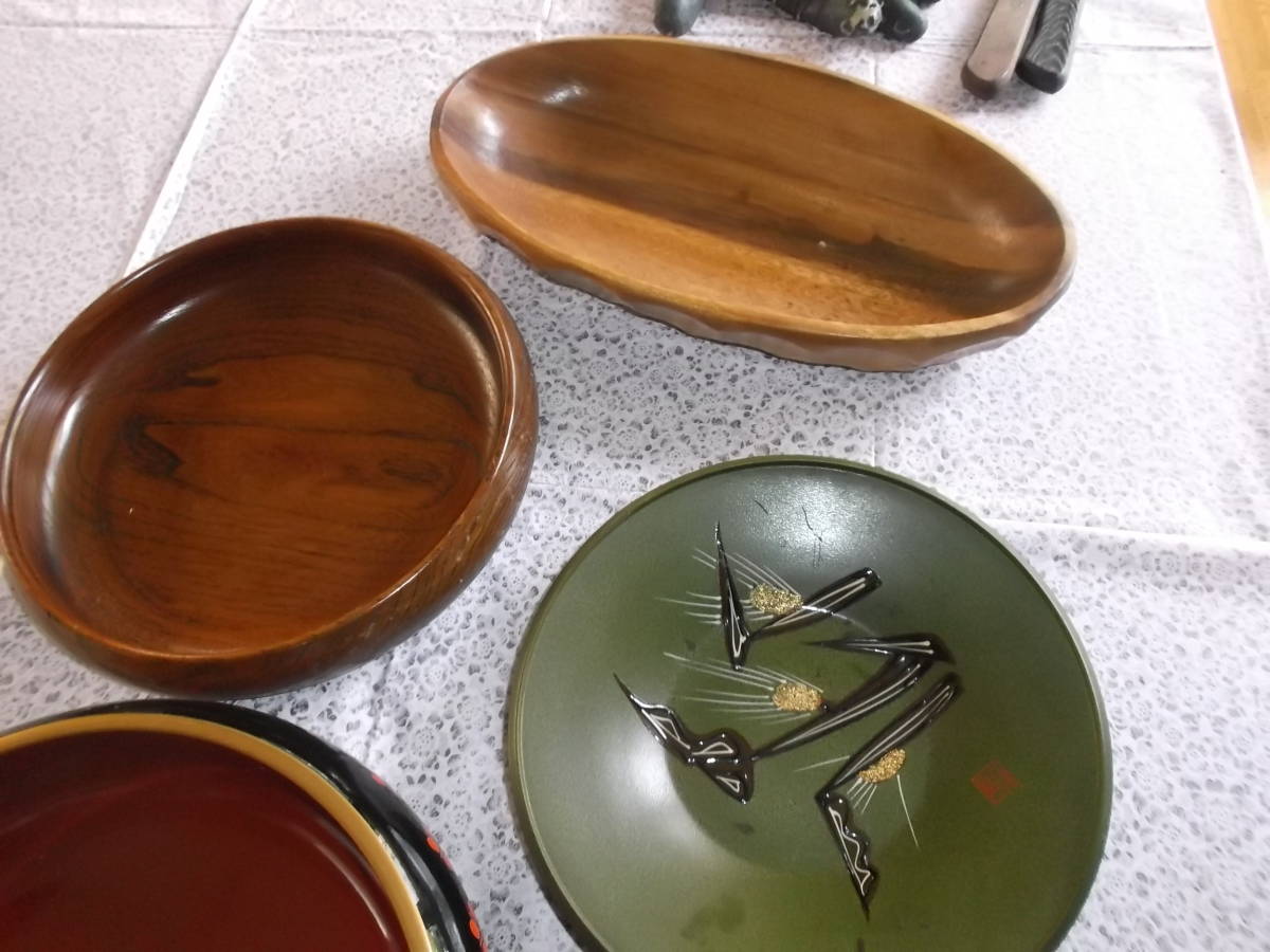 お菓子皿 5点 和菓子 洋菓子 料理 木製 プラスチック 昭和レトロ スィーツ 盛り皿 木彫り キッチン インテリア 送料着払い