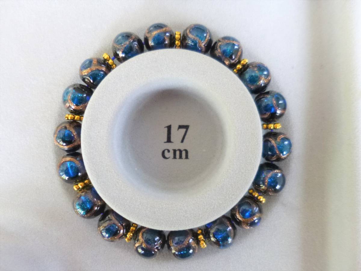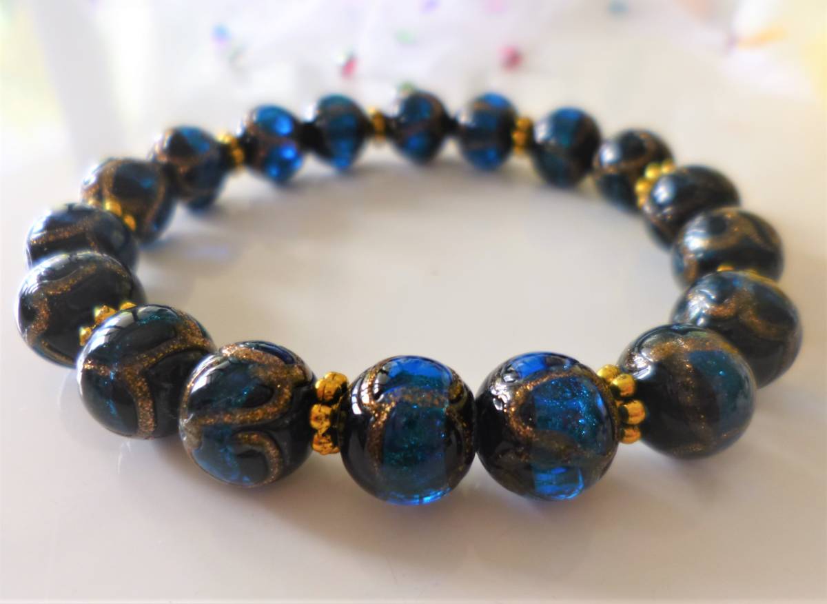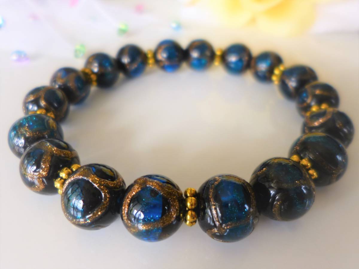 ☆綺麗な とんぼ玉(トンボ玉)     きらきら輝く☆     ホタルガラス♪    ブルーゴールドブラック☆    デイジーロンデルビーズ(ゴールドカラー☆   10mm☆  ☆17cm