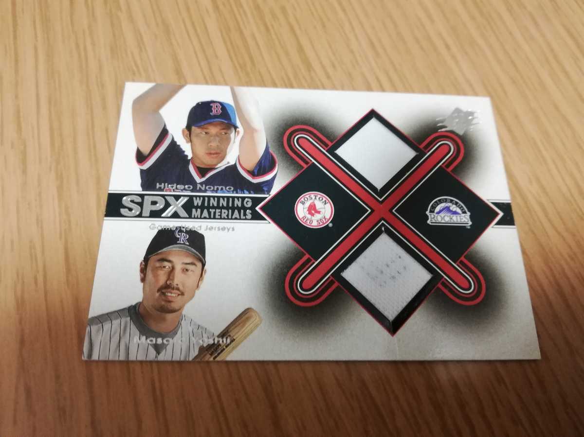 野茂英雄&吉井理人の二人がメジャーリーグの実際のゲームで使用したジャージの一部がダブルでインサートされたカードです。カードはupper deck より発行されたものです。