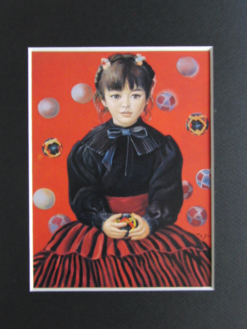 芝田米三、【童女と手まり】、希少な額装用画集より、状態良好、新品額装付、日本人画家、送料込み