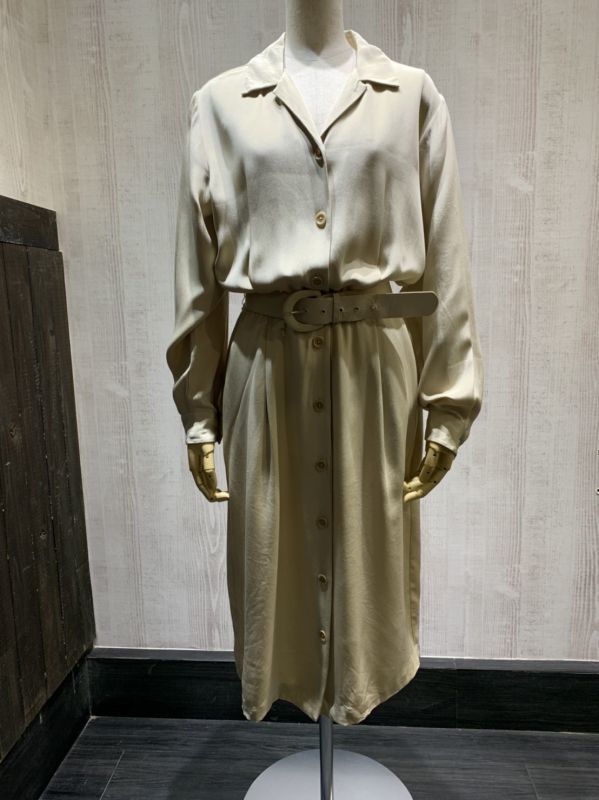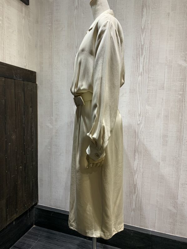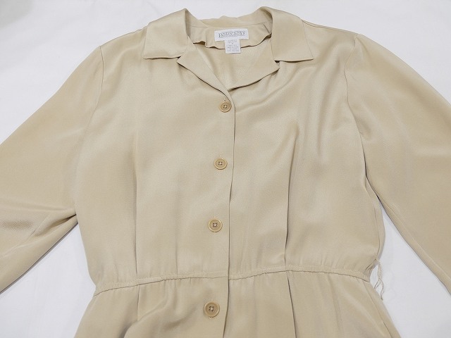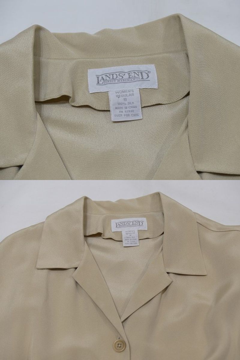 90s ビンテージ vintage LANDS' END オープンカラー 前開き シルク シンプル ナチュラル デザイン ベルト付き ワンピース ドレス MLサイズ | |||