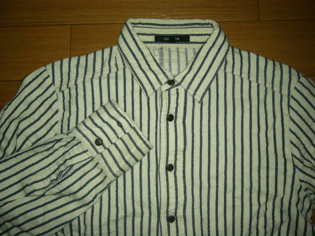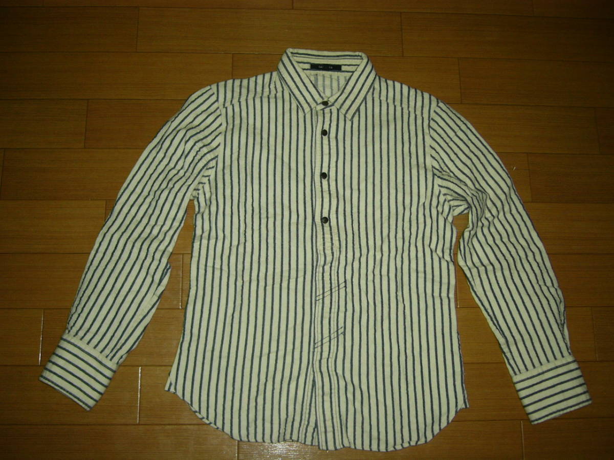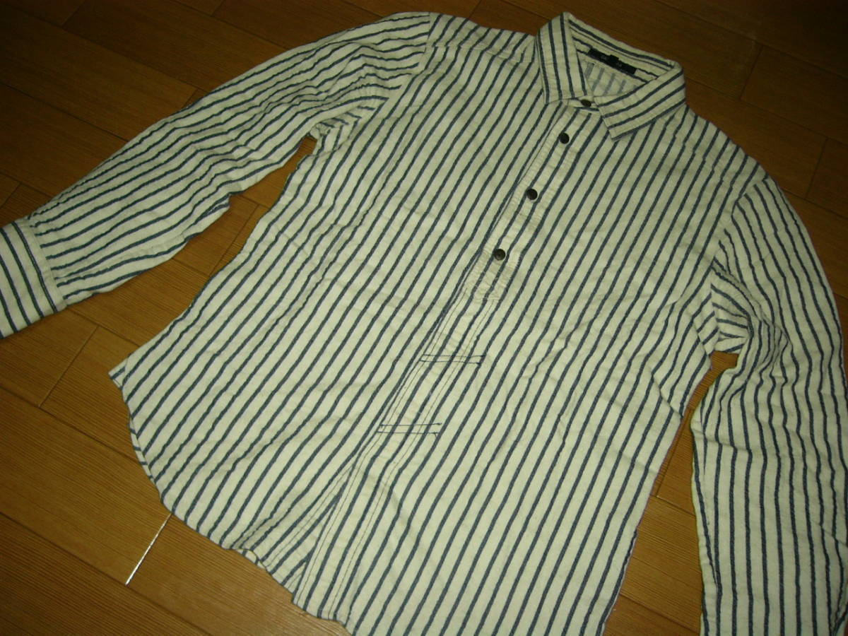 カミエラ CAMIERA ヘンプ混 ストライプ シャツ 48 マリン 囚人