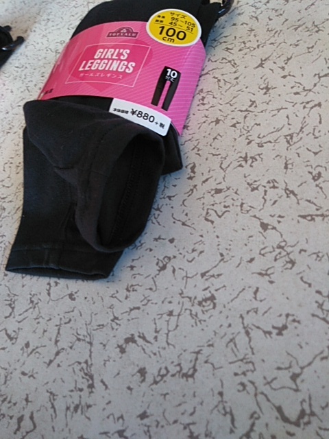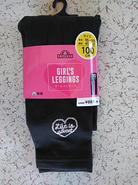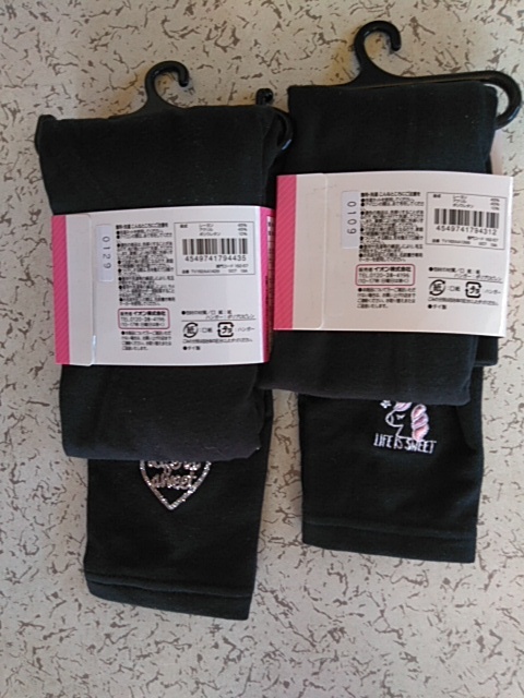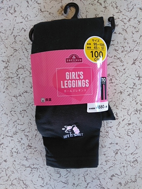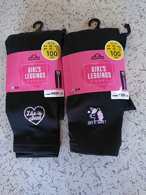 トップバリュ ガールズレギンス10分丈 2枚 (黒地・ハート&ユニコーン?)100サイズ