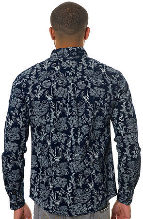 新品UKブランド Bellfield Kansai Buttondown Shirt/Navy S ベルフィールド メンズ 長袖ボタンシャツ 柄物 総柄 ネイビー 紺
