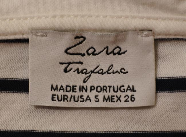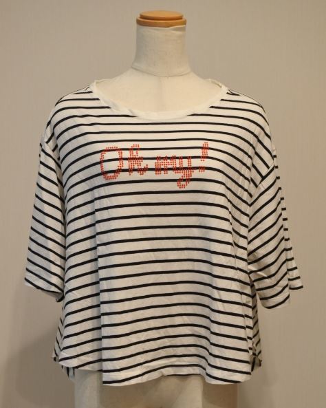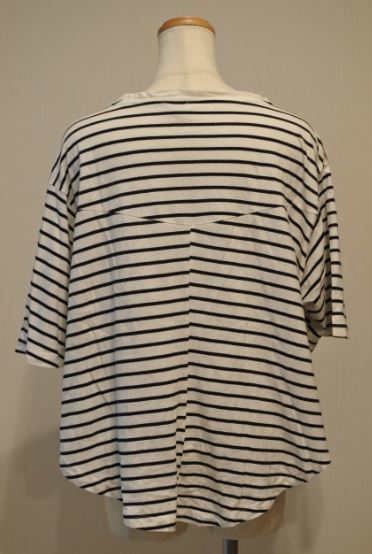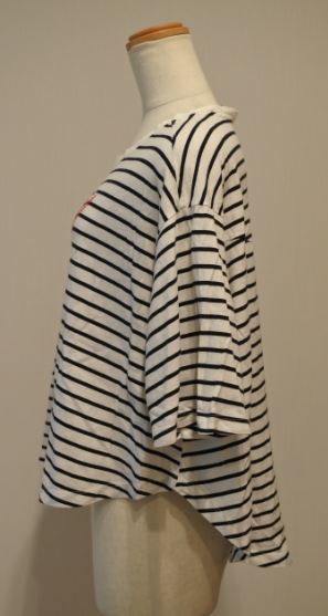ZARA ザラ カットソー Tシャツ 半袖 ドルマン フィッシュテール Sサイズ ボーダー柄 白xネイビー ymdnrk k2h0317