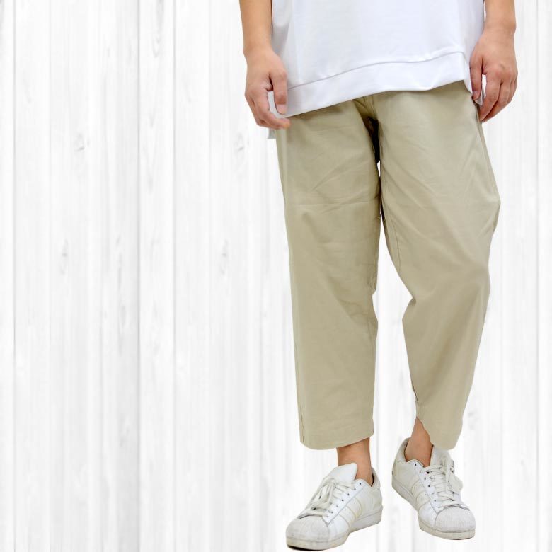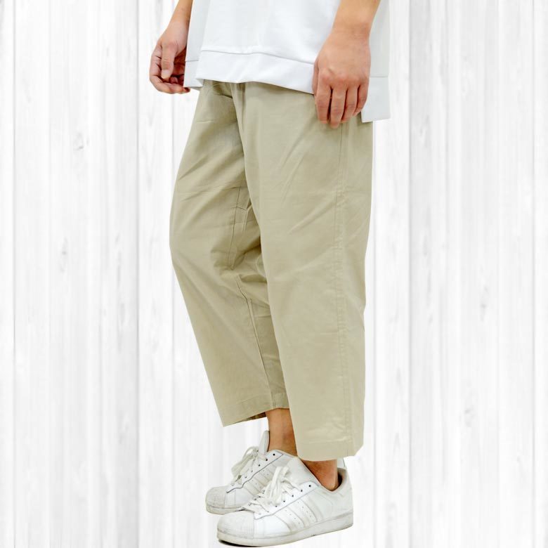 ルーズなスタイルのワイド幅も快適な着用感を実現しておりアンクル丈とテーパードシルエットでファッション性も高い仕上がり。