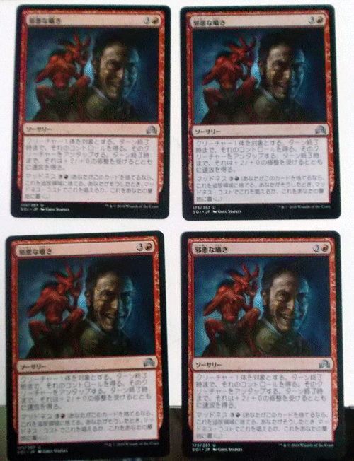 MTG日本語4枚セット/邪悪な囁き/イニストラードを覆う影/アンコモンです。中古品扱いですので、神経質な方、美品をお求めの方は入札をご遠慮ください。