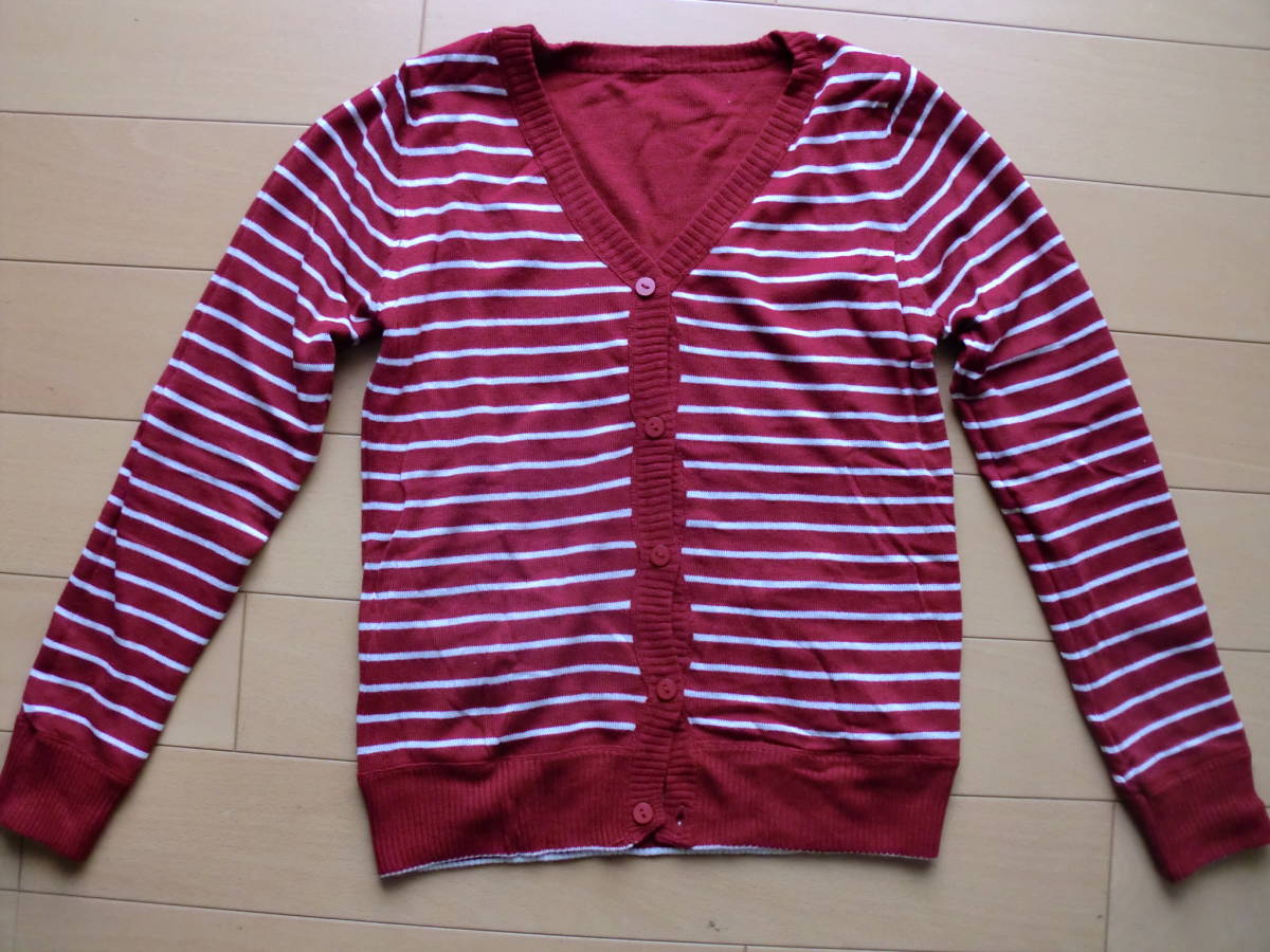 無地とボーダーの珍しいリバーシブルのカーディガン、新品・Mサイズです。