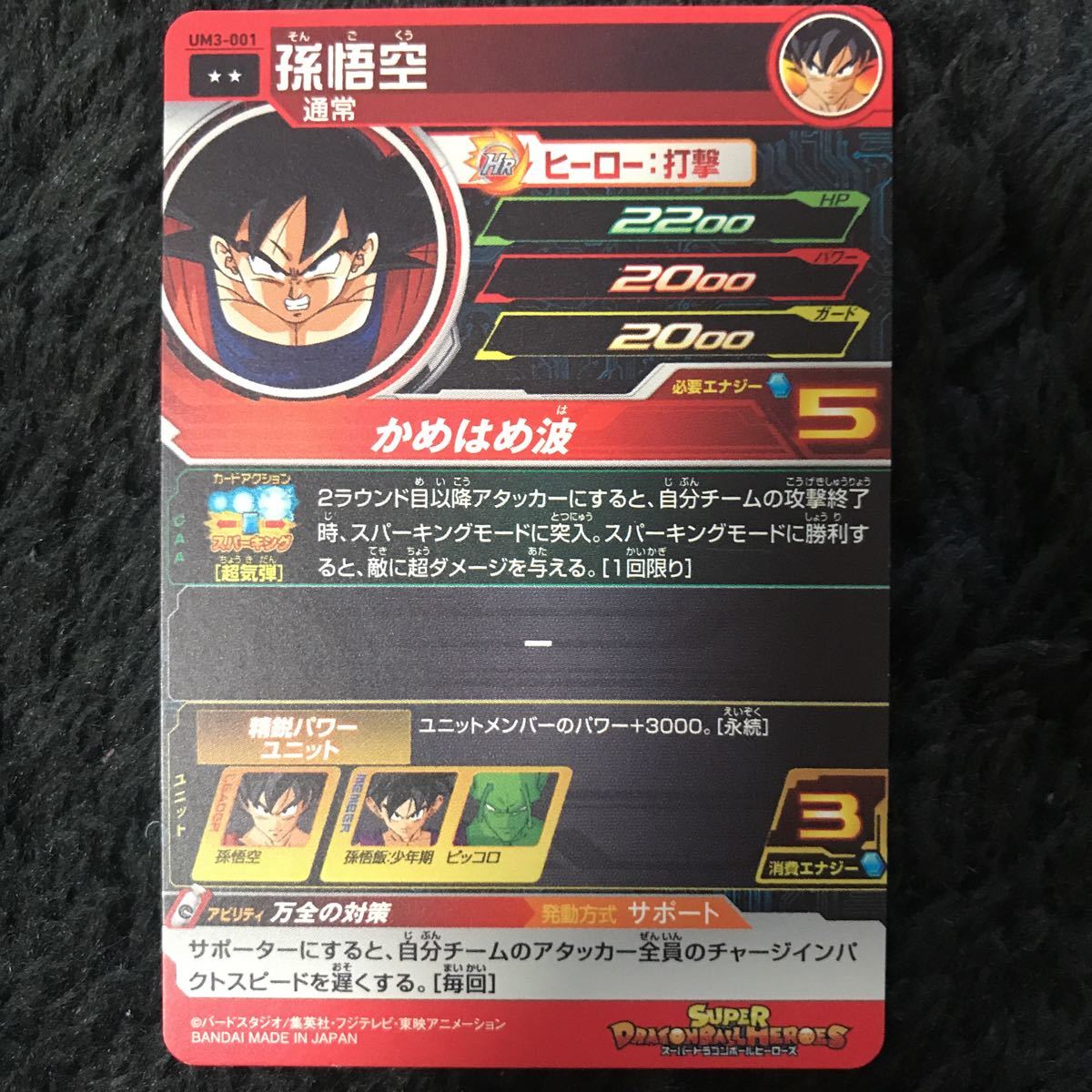 UM3弾レア/ 孫悟空(通常)/ UM3-001/ 技:かめはめ波/ スーパードラゴンボールヒーローズ/ レアリティ:☆☆/ BANDAI