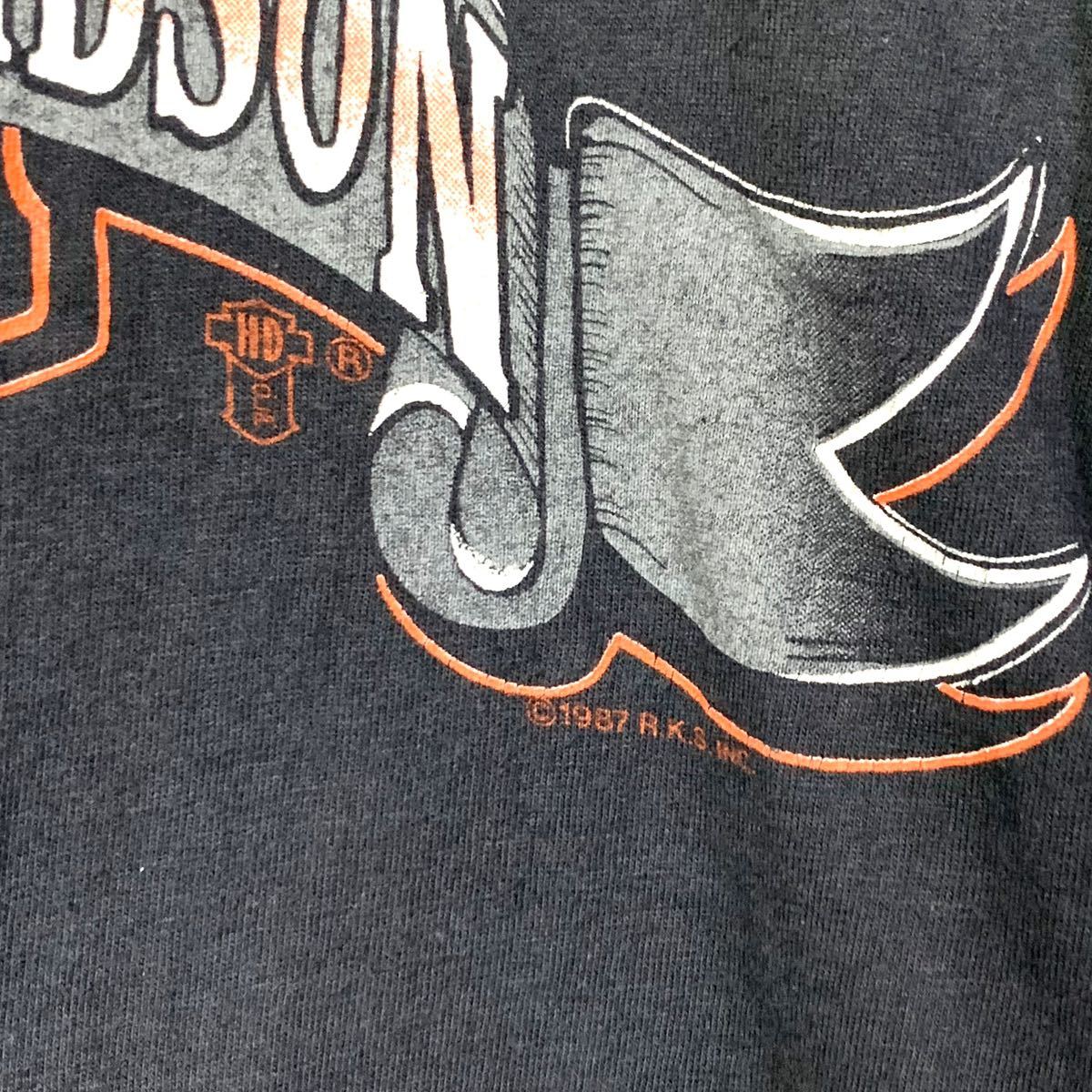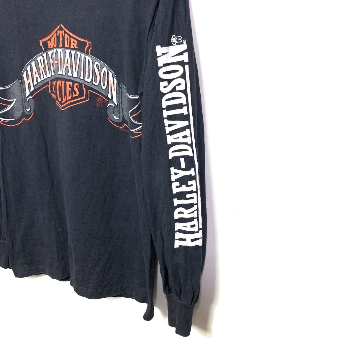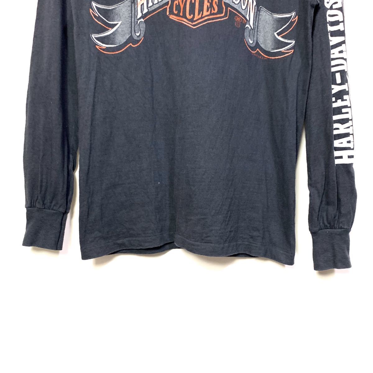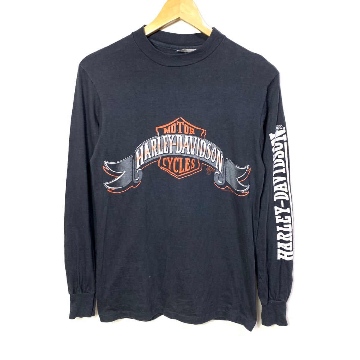 ■ 激レア ビンテージ ハーレーダビットソン スカルウィング 長袖 袖プリント Tシャツ Sサイズ 黒 HARLEY-DAVIDSON SKULL WING ロンT ■
