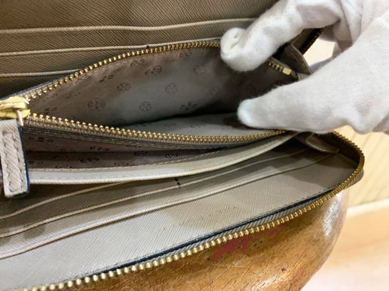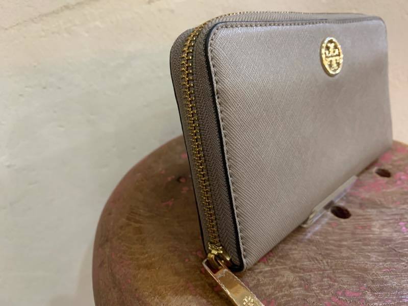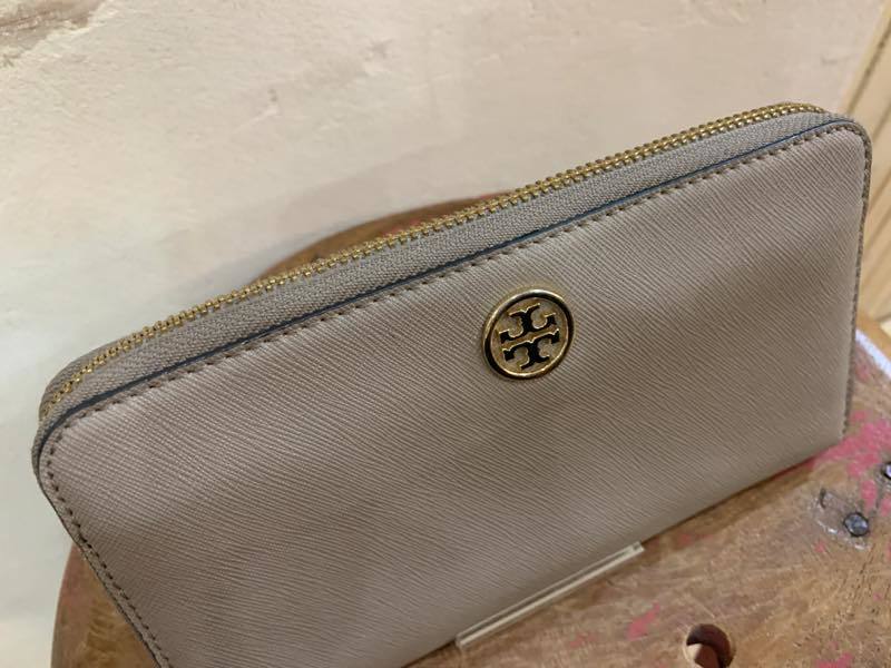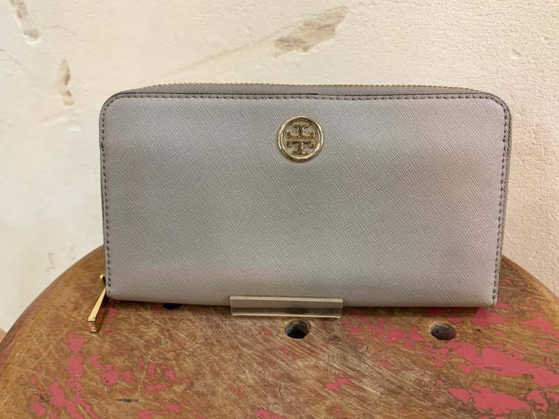 ★TORY BURCH/トリーバーチ ROBINSON ロビンソン ラウンドファスナー 長財布 グレー レザー レディース財布 ウォレット 美品 USED ★