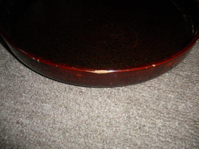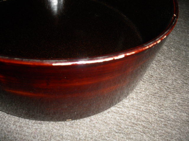 | 昭和レトロの茶びつ入れです。 木製の漆器です。 画像でお判りのように全体の外側及び中側の所々に擦れ、キズ 剥がれ等々ございます。 サイズ 径32cm 高さ12cm ========================== 神経質なお方・些細な事が気になるお方、 または、新品をお求めのお方は、ご入札をお控えください。 ―――――――――――――――――――――――――――――――――― 画像に写しきれないキズや色の剥れた部分、見落とし等あるかもしれませんが、ご理解の上ご入札をお願いします。 中古品をご理解の上、ノークレームノーリターンでお願いいたします。 アンティークの為、お客様との見解の相違が多少あるかと思いますがご理解の上、ご入札よろしくお願い致します。 | |||