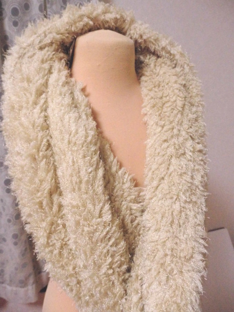 ベージュのふわふわしたマフラーです♪