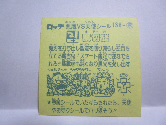 ビックリマンシールです。 魔切磋(ませっさ)(悪魔)No.136 汚れあります。 |