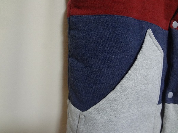 面2:耐久・耐水・防風性に優れたロクヨンクロスに、ヨークに防水性のあるフェイクレザーを用いたアウトドア風のデザインに、襟元の刺繍がアクセント。