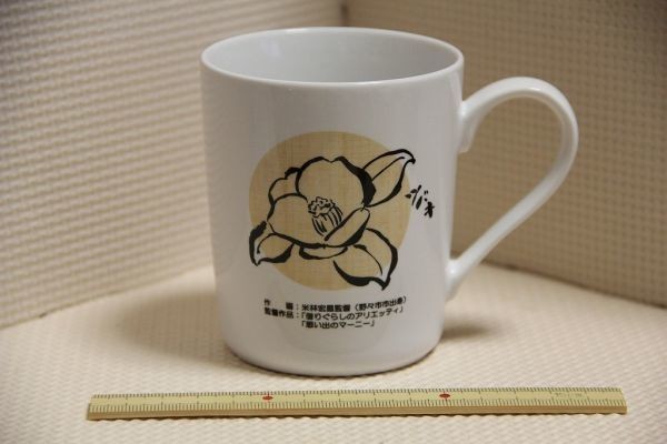 米林宏昌監督 ツバキ の絵 と 野々市市 キャラクター のっティのマグカップです