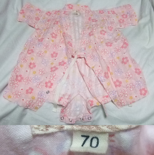 ジャンク品(ベビー甚平(70,白地&桜柄))