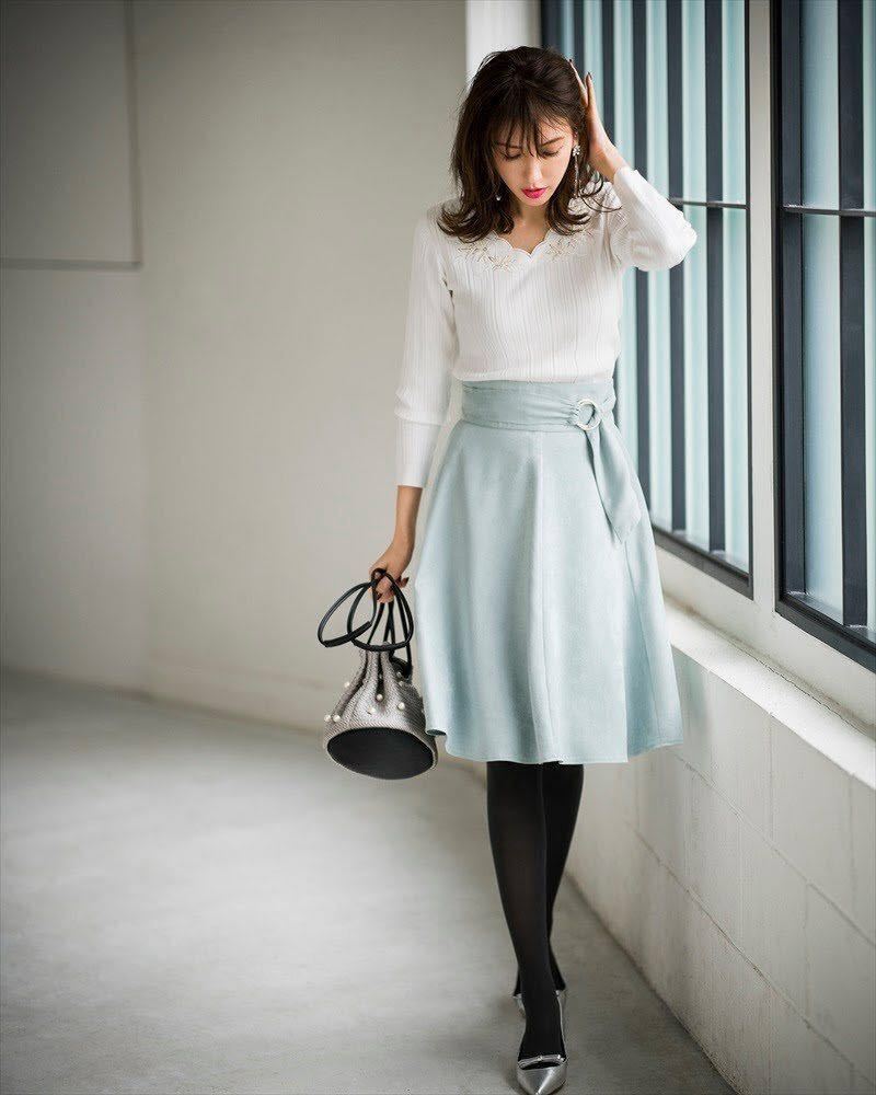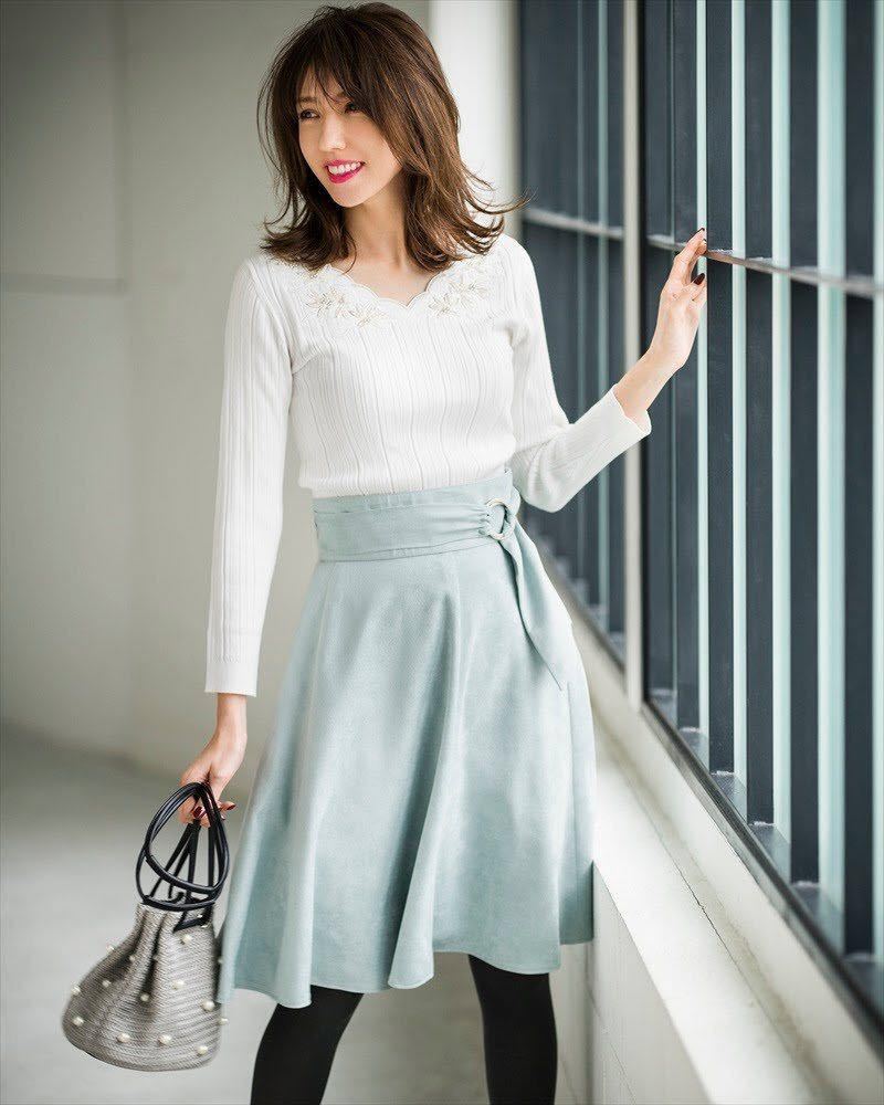 雑誌掲載の多数あったスカートです。好感度の高い清楚なデザインでオンオフ活躍してくれそうなスカートです。