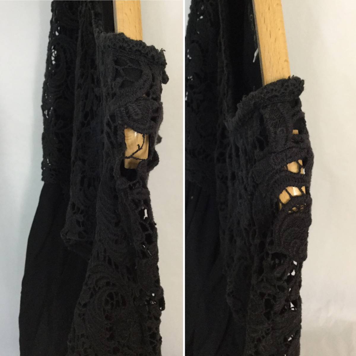 右肩のレースの一部分にほつれが見られ左肩と比べ少し広がっております。