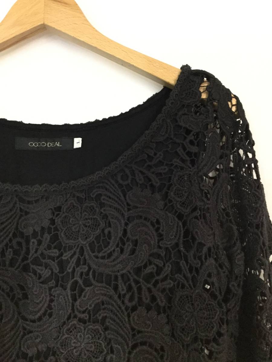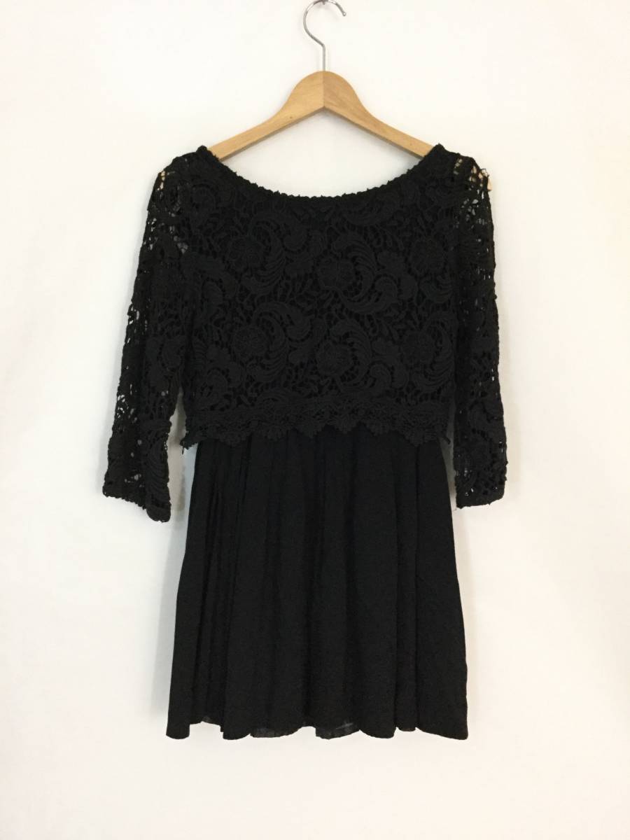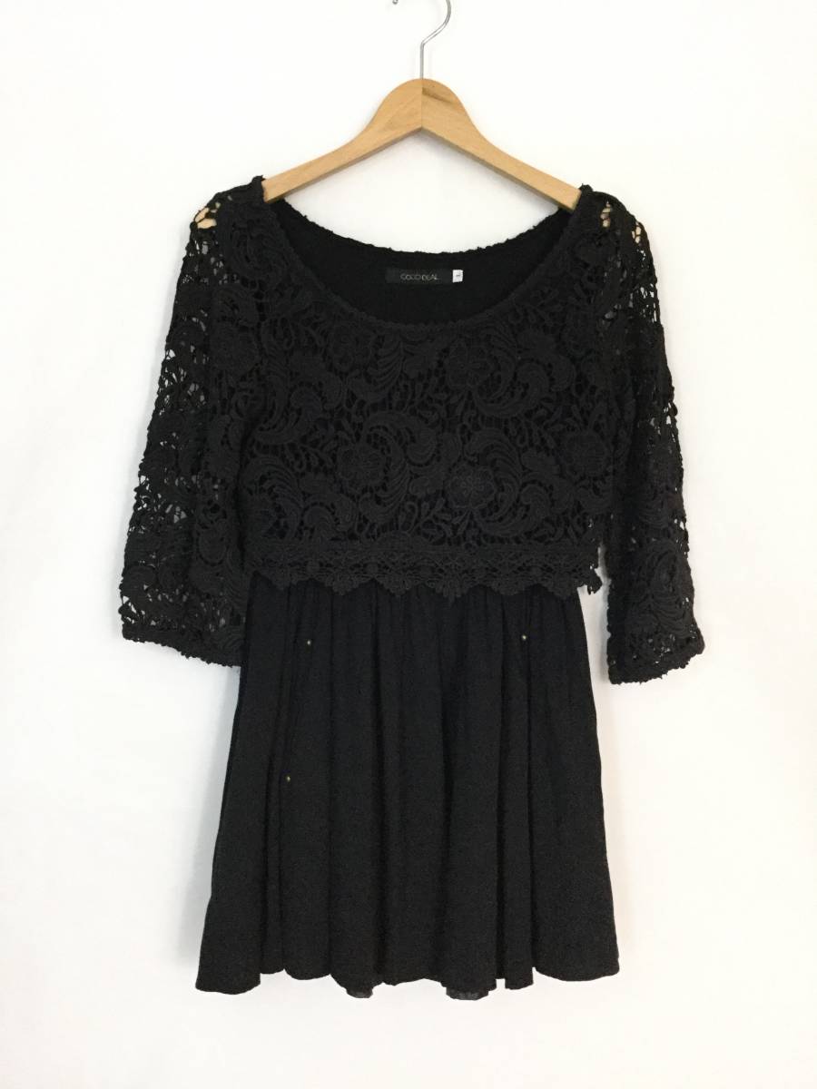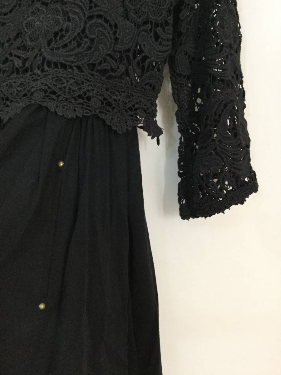 ★ COCODEAL ココディール レース切替 フレアワンピース 黒 ブラック 1 七分袖 ポケット付き ウエストゴム