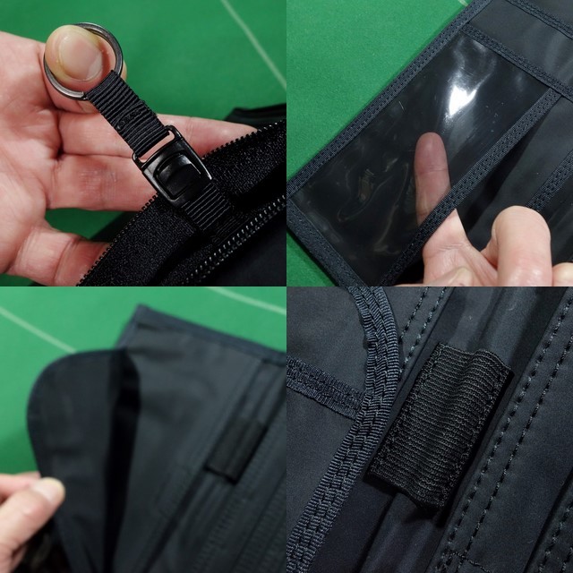 背面側にジッパーポケット1つ、内部にキークリップ装備。