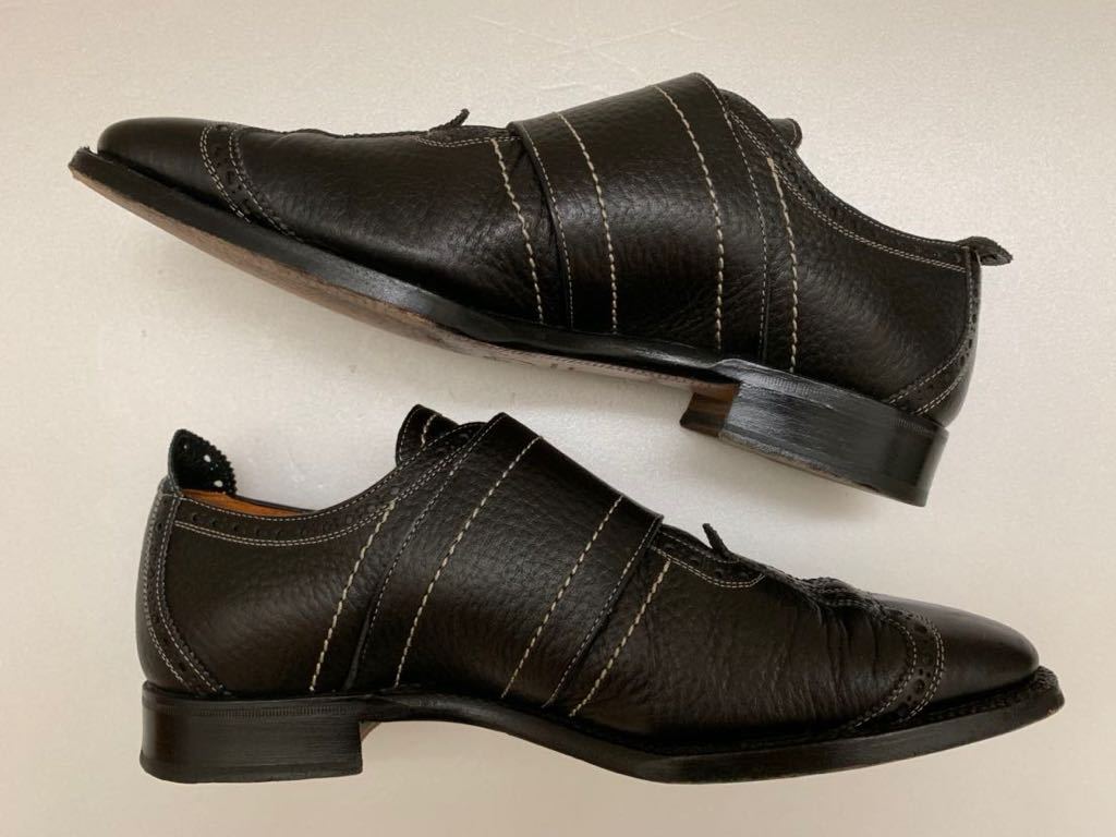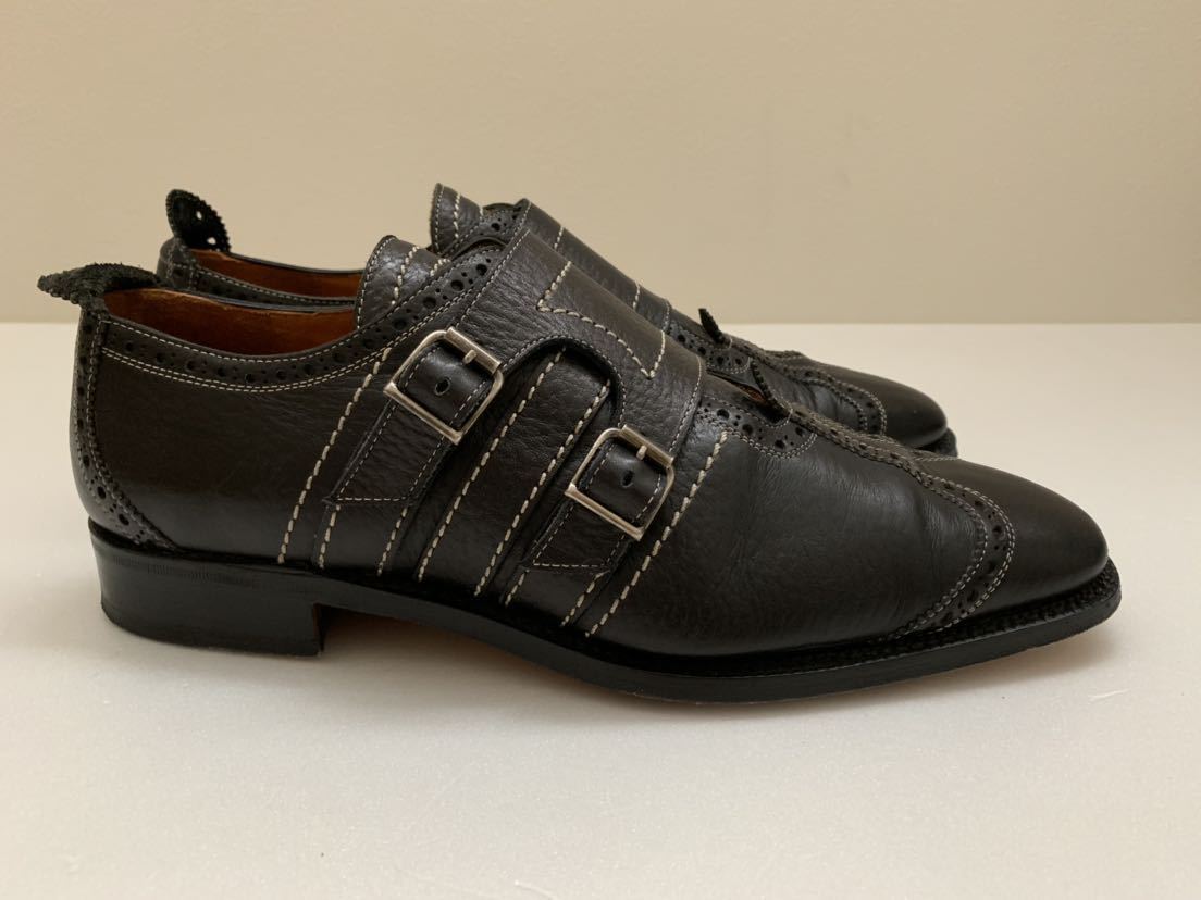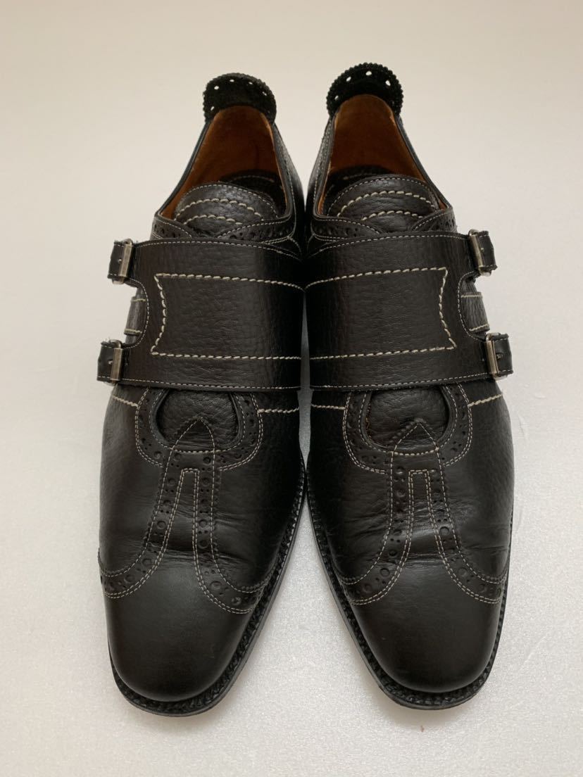 ・風合いの良い上質なレザーを使用し計算された美しいシルエットにダブルモンクデザインが雰囲気抜群でとてもお洒落なシューズになります。