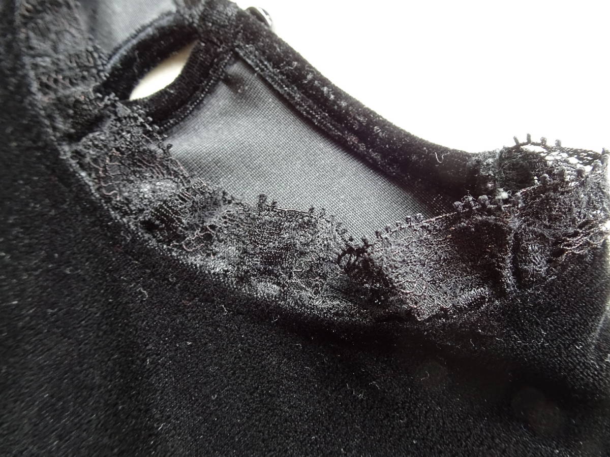 首周りは前部分のみレース付き、後ろは涙開きボタンで外れます。