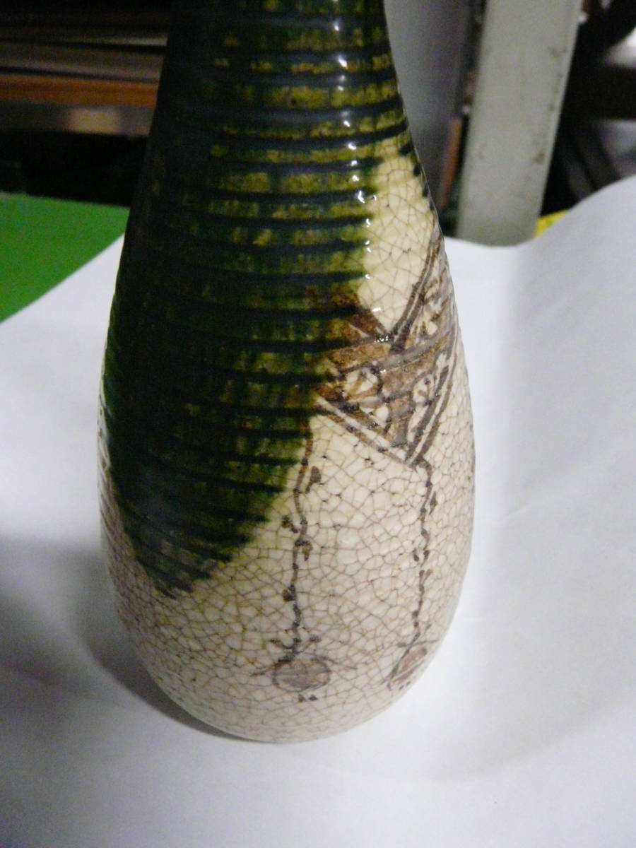 z231織部焼の一輪挿しの出品です。 結構古い織部焼ではないかと思います。 銘も底に入っています。作者は知識不足で分かりません。 画像を参考にご入札ください、 箱は見つかりませんでした。 画像にて、商品の状況をご確認のうえ、ご入札ください。 気になる部分は、アップで映してあります。 格安スタートのこの機会に、いかがでしょうか? ★サイズ★ (全体・外寸) 横幅:約8cm×奥行:約8cm×高さ:約26㎝ 横幅:約cm×奥行:約cm×高さ:約cm ☆注意事項を必ずご覧ください。 | |