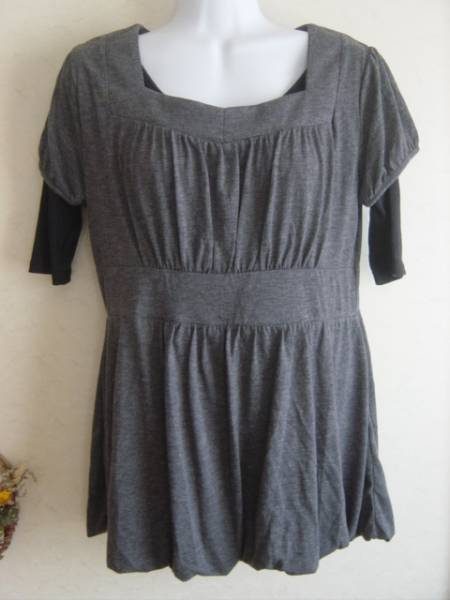 ●グレーバルーンチュニックカットソー 胸下切換えギャザーで、裾はバルーンデザインです。