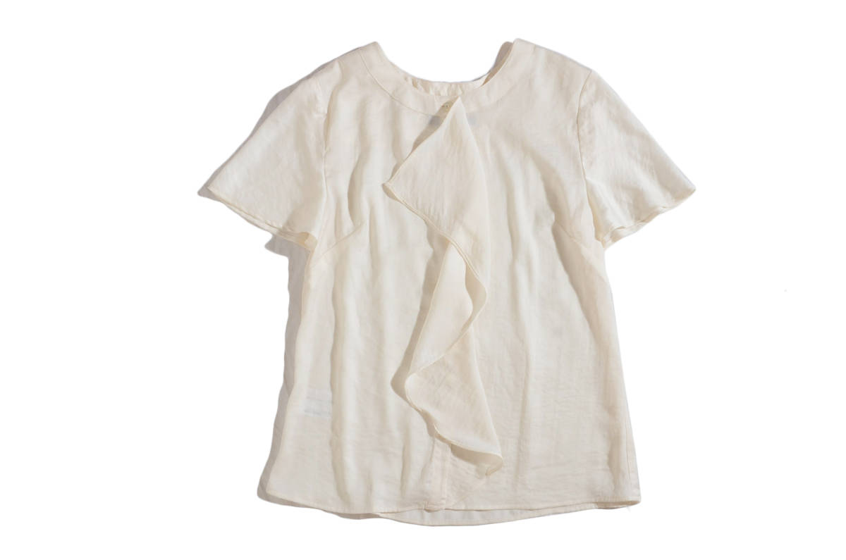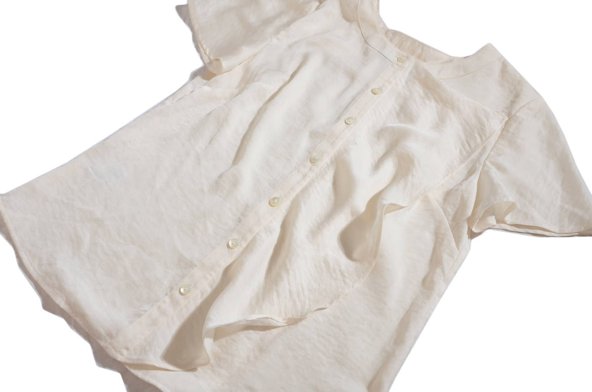 ローラアシュレイ ノーカラーフリル ブラウス トップス 7 2点以上ご落札で送料無料!