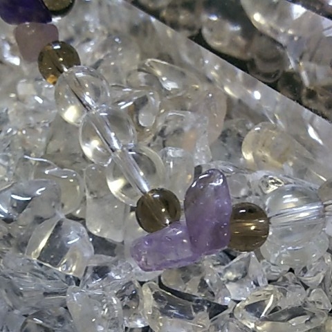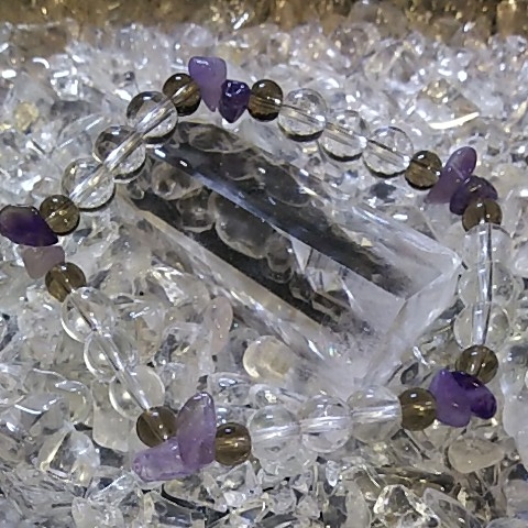 アメジストと天然石水晶をつかいました。パワーストーンブレスレットになります。