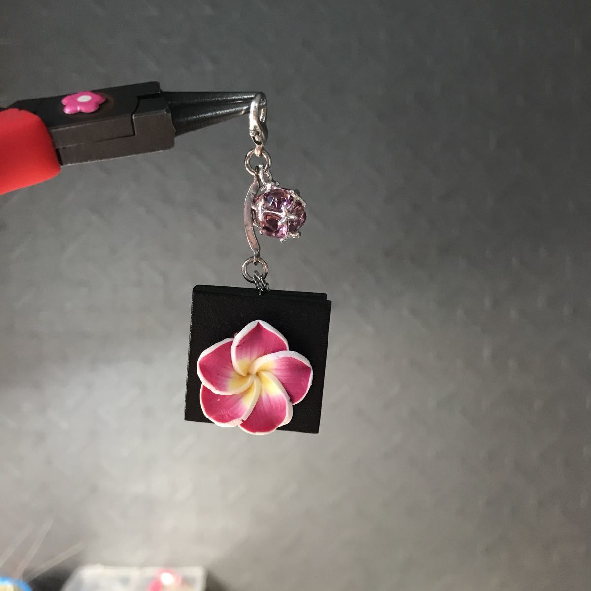 両面にお花がついてるので裏返っても安心です、漆黒のウッドフレームにプルメリアを納めてみました。とても可愛いです。