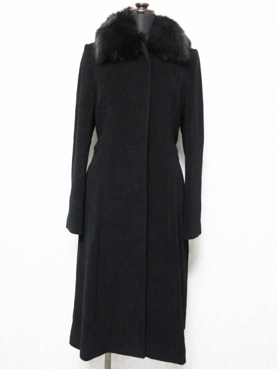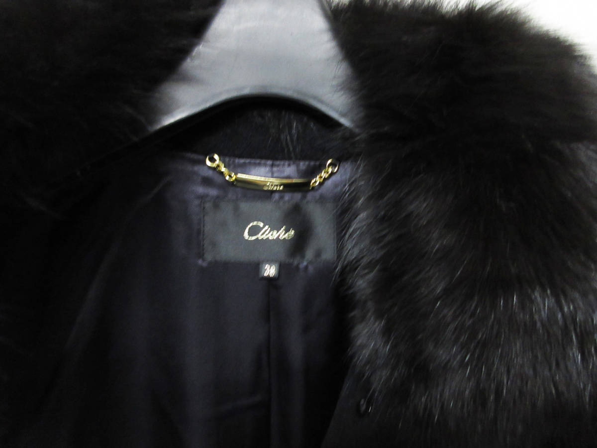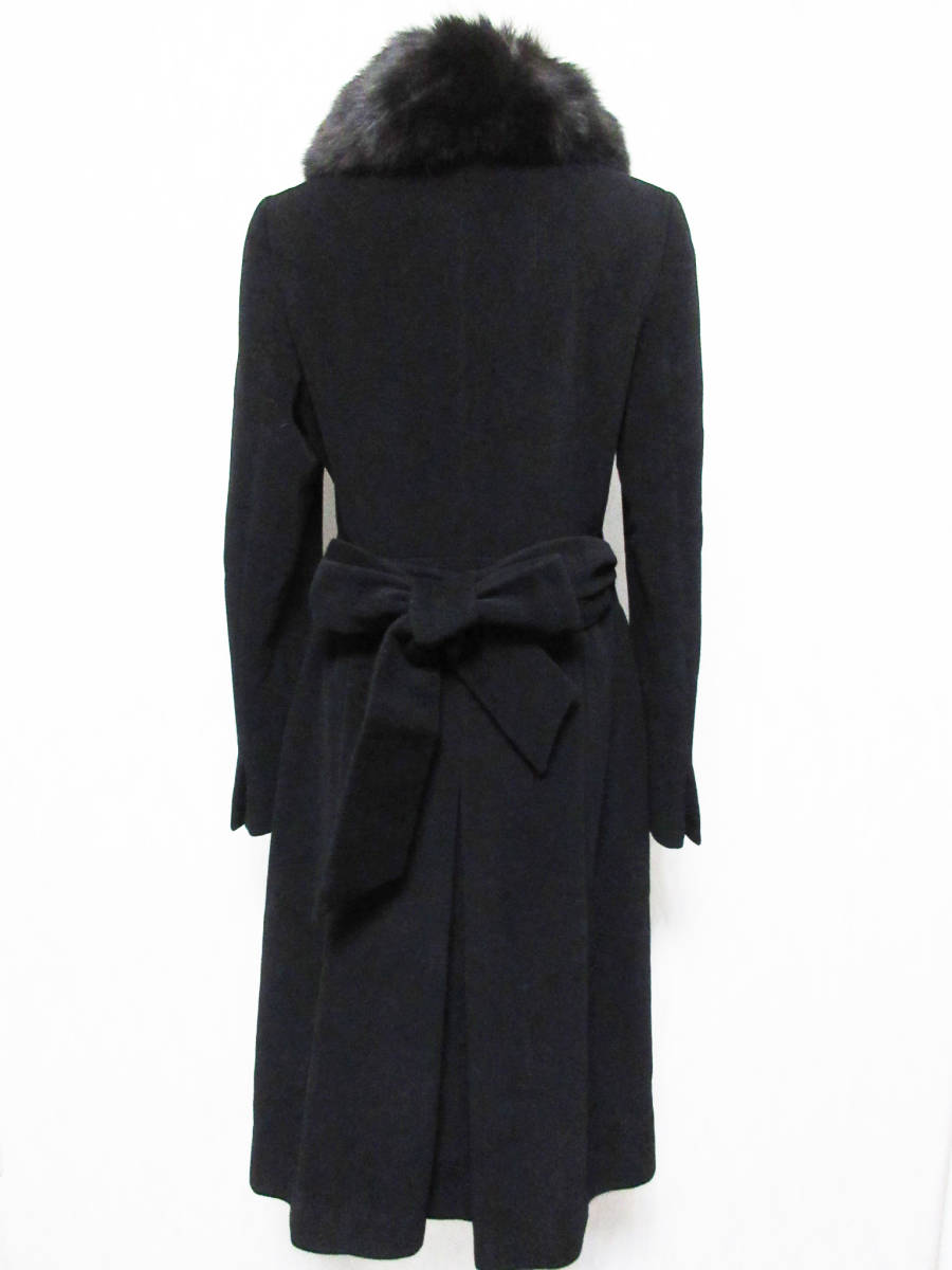 フランドル Cliehe アンゴラ ウール フォックスファー ベルト付き ステンカラー コート 黒 ブラック 38 南2069