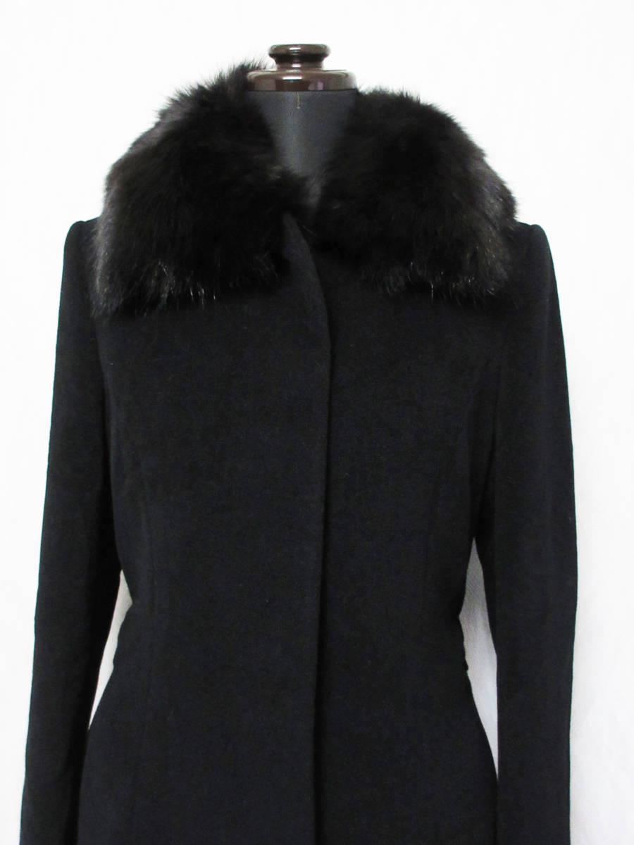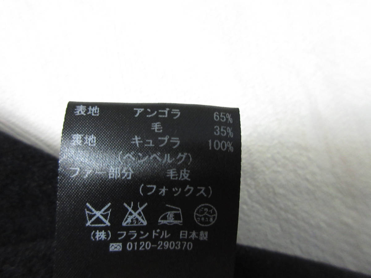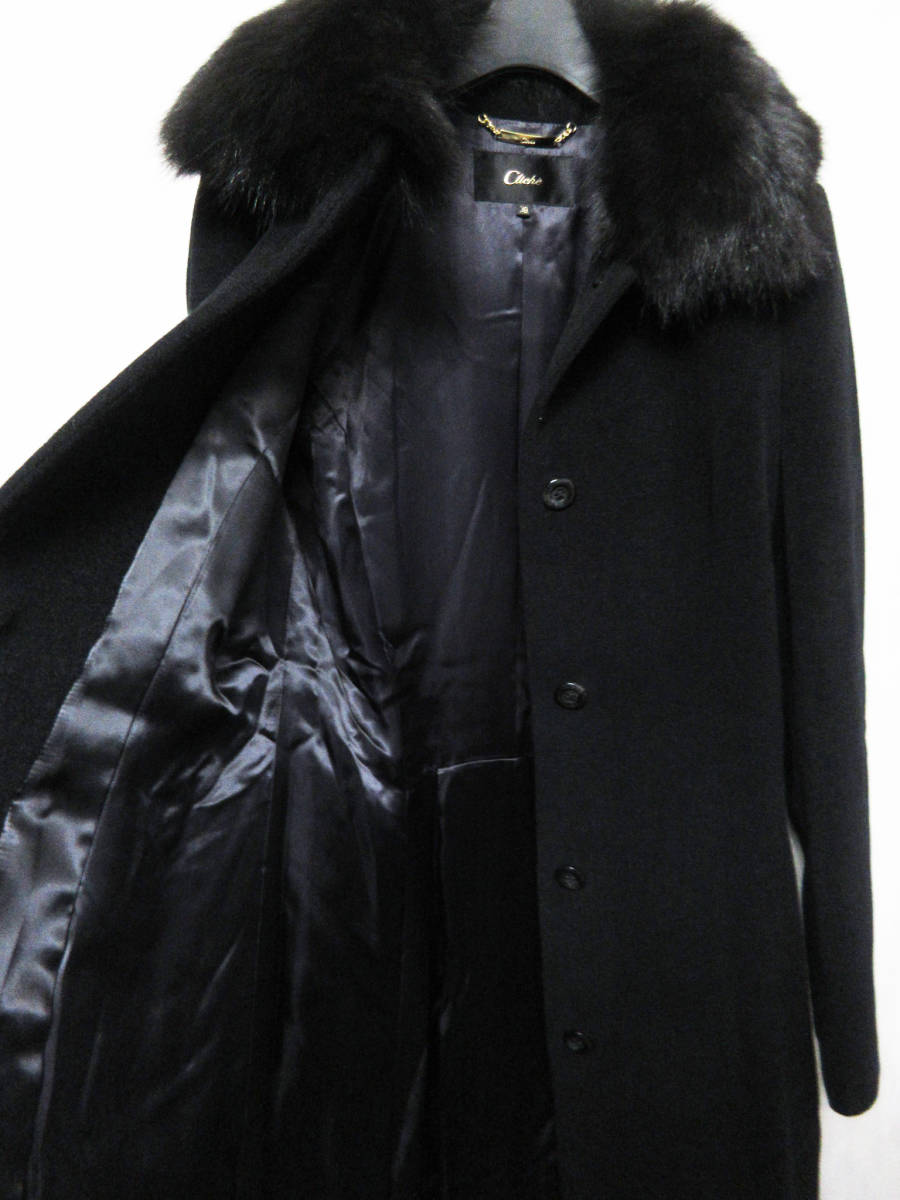 フランドル Cliehe アンゴラ ウール フォックスファー ベルト付き ステンカラー コート 黒 ブラック 38 南2069