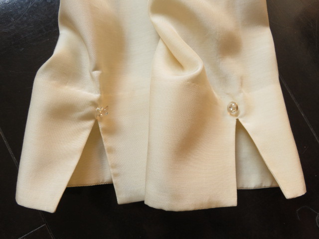 薄手の光沢ジャケットです、ボタンはラインストーン入りのまん丸透明ボタン、お袖にスリット入っています。