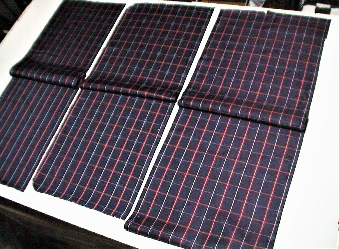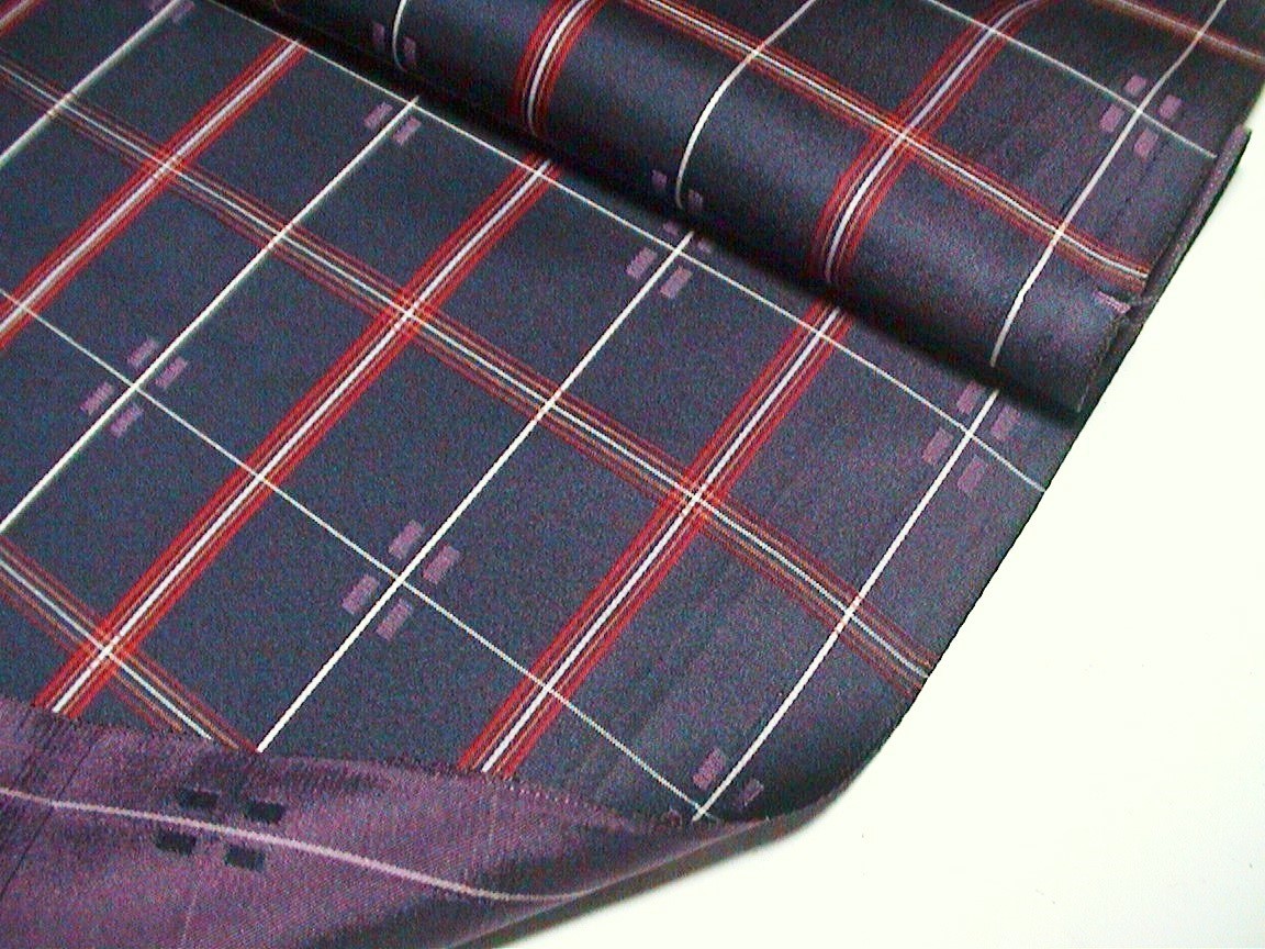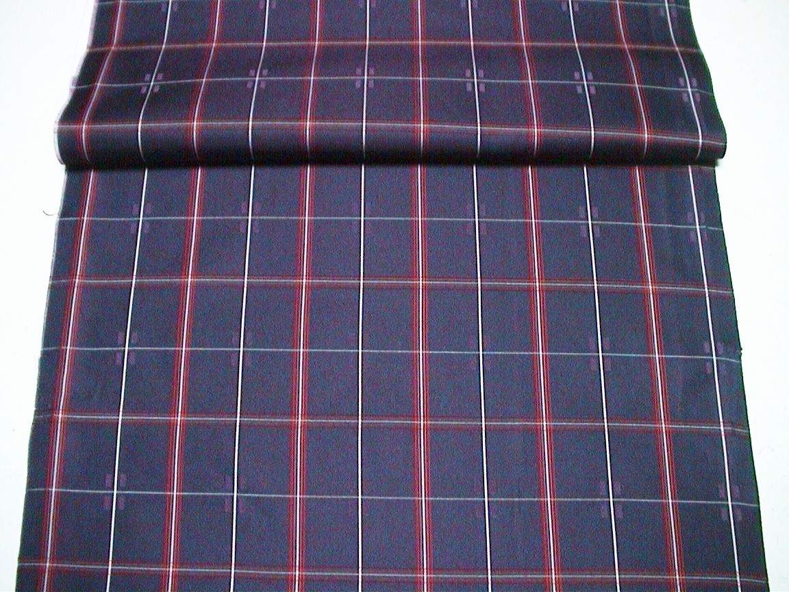 着物はぎれ(古布)化繊繻子織 チェック紺 (39x100,36x93,33x100cm)