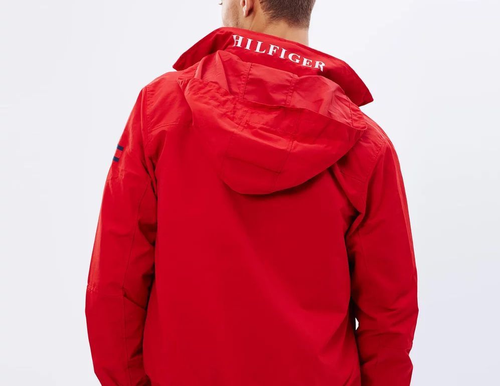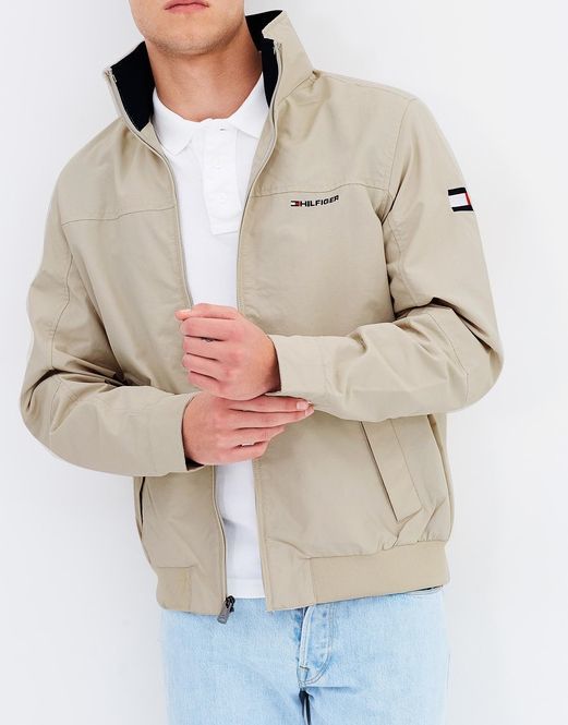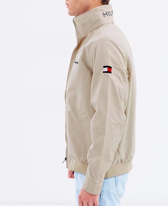 USA正規品【M】 トミーヒルフィガー TOMMY HILFIGER ナイロン ジャケット 撥水加工 フラッグロゴ フード付 カーキ khaki ベージュ berge